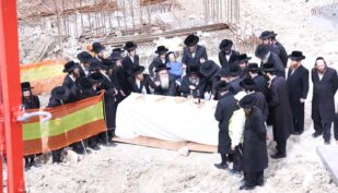 מעמד יציקת בורות מקווה של סאטמאר בית שמש ע"י הרה"צ חיים צבי טייטלבוים אב"ד סאטמאר י-ם.