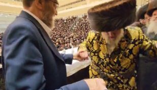 צפו: באופן חריג האדמו”ר מויז’ניץ דיבר לחסידיו בעברית