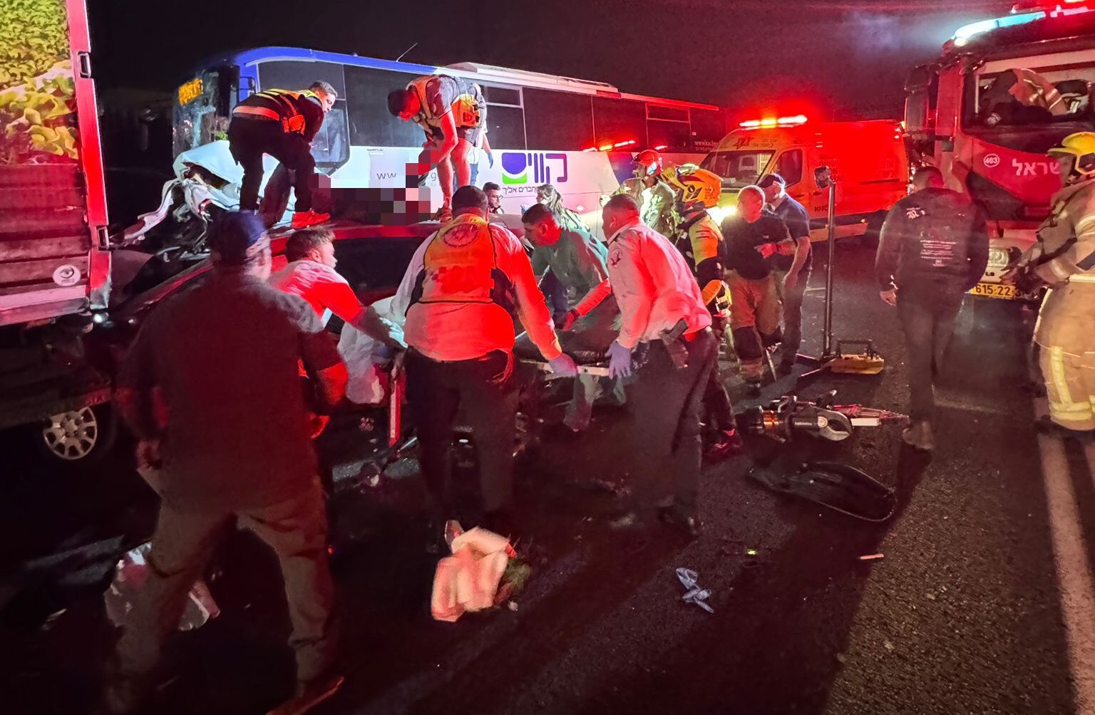 פרמדיק מד”א איגור טרסקין וחובשי מד”א דניאל שבע ורועי גימפוביץ, סיפרו: “מדובר בתאונה קשה במעורבות מספר כלי רכב, ראינו 2 רכבים פרטיים מרוסקים בין המשאית לאוטובוס ובתוכו נלכדו 2 גברים בשנות ה-30 לחייהם, הם היו בהכרה וסבלו מחבלות קשות בגופם. ביצענו פעולות חילוץ והענקנו להם טיפול רפואי מציל חיים ופינינו אותם לבית החולים כשמצבם קשה. במקביל, צוותי מד”א נוספים שהגיעו למקום טיפלו ב-2 פצועים נוספים שנפצעו באורח בינוני, בניהם צעירה בת 18 ופינו אותם לבי”ח.”