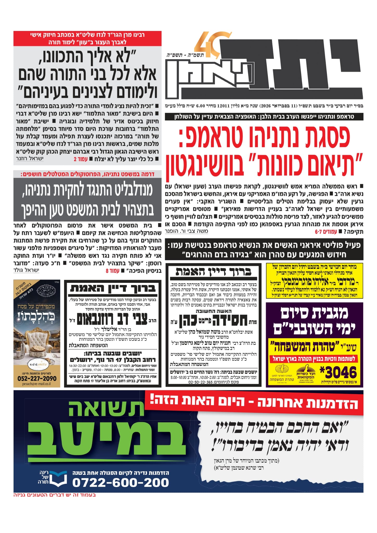 צפו בכותרות העיתונים החרדים לבוקר יום ראשון