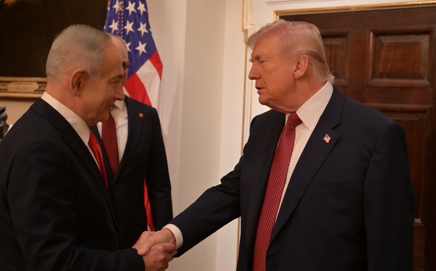 בתום שלוש שעות, הסתיימה לפני זמן קצר פגישתם של ראש הממשלה נתניהו ושל נשיא ארה”ב טראמפ, שנערכה בחדר הקבינט שבבית הלבן.