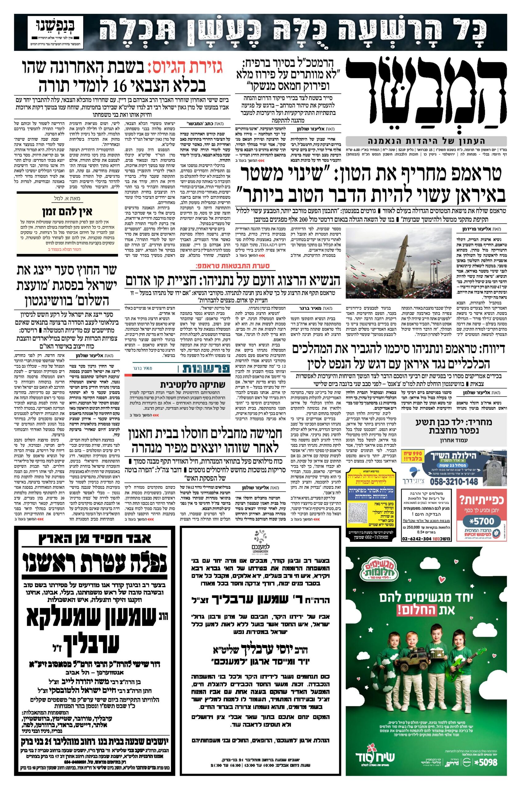 צפו בכותרות העיתונים החרדים לבוקר יום שישי