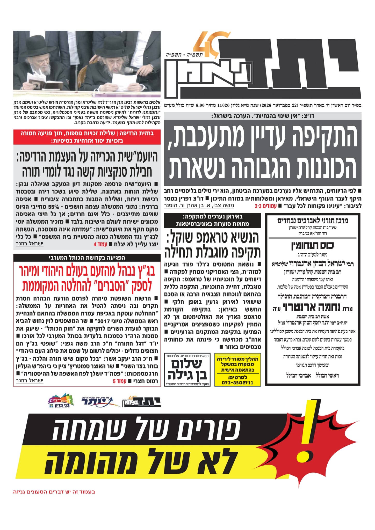 • צפו בכותרות העיתונים החרדים לבוקר יום ראשון