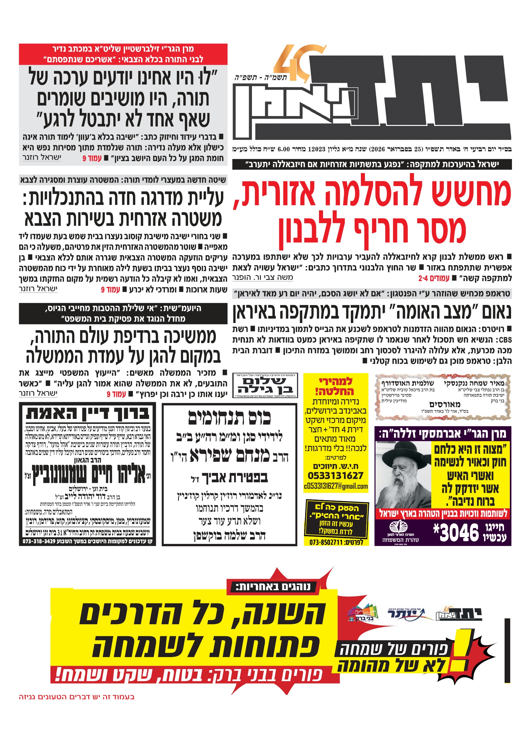 צפו בכותרות העיתונים החרדים לבוקר יום שני