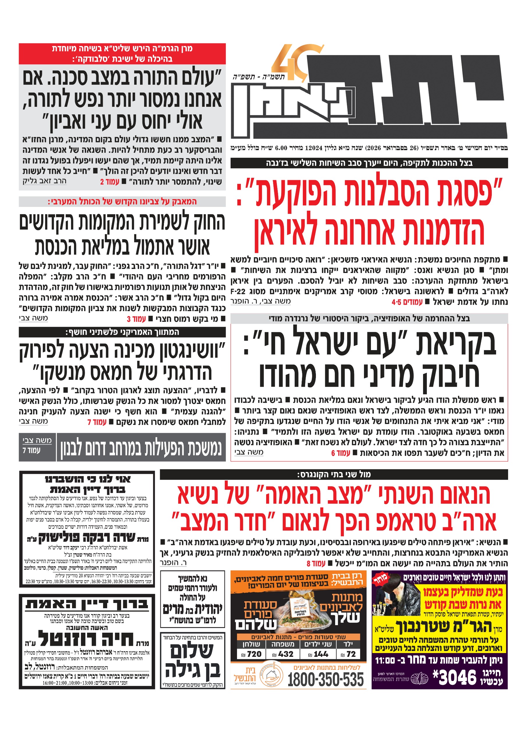 יום חמישי, פברואר 26, 2026