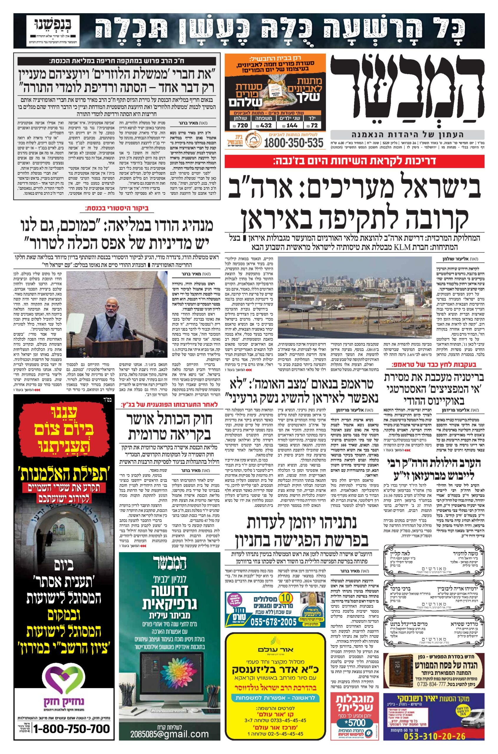 צפו בכותרות העיתונים החרדים לבוקר יום שני