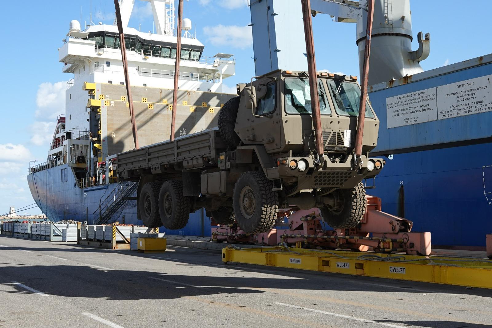 כחלק מהתמיכה המלאה בצורכי צה”ל, משרד הביטחון וצה”ל השלימו במהלך סוף השבוע את קליטתה בישראל ופריקתה של אוניית מטען, ועליה טונות של ציוד צבאי הכולל בין היתר, ציוד צבאי, עשרות האמרים, משאיות ועוד.