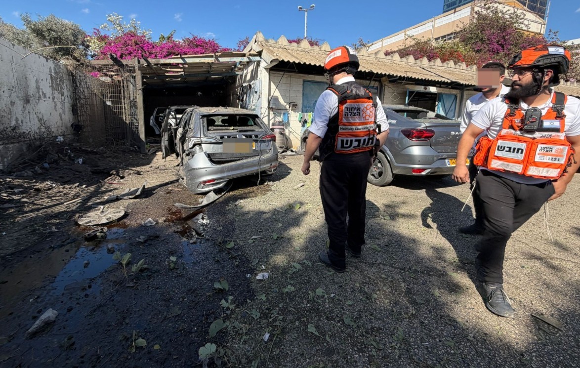 חובש בכיר במד”א יחזקאל גולדרייך, מבין הראשונים שהגיעו לזירה, סיפר: “הייתי בפארק סמוך למקום הנפילה כשלפתע נשמעו אזעקות, זמן קצר לאחר מכן נשמע פיצוץ חזק. הבחנתי בעשן רב העולה מאזור הפגיעה, ומיהרתי לסרוק את המקום. שם, מצאתי אנשים מבוהלים שוכבים על הדשא, וגבר כבן 40 שסבל מפציעה קשה מרסיסים. הענקתי לו טיפול רפואי ראשוני בשטח, ובהמשך יחד עם צוותי מד”א נוספים שהגיעו לזירה, פינינו אותו לבית החולים כשמצבו מוגדר קשה.”