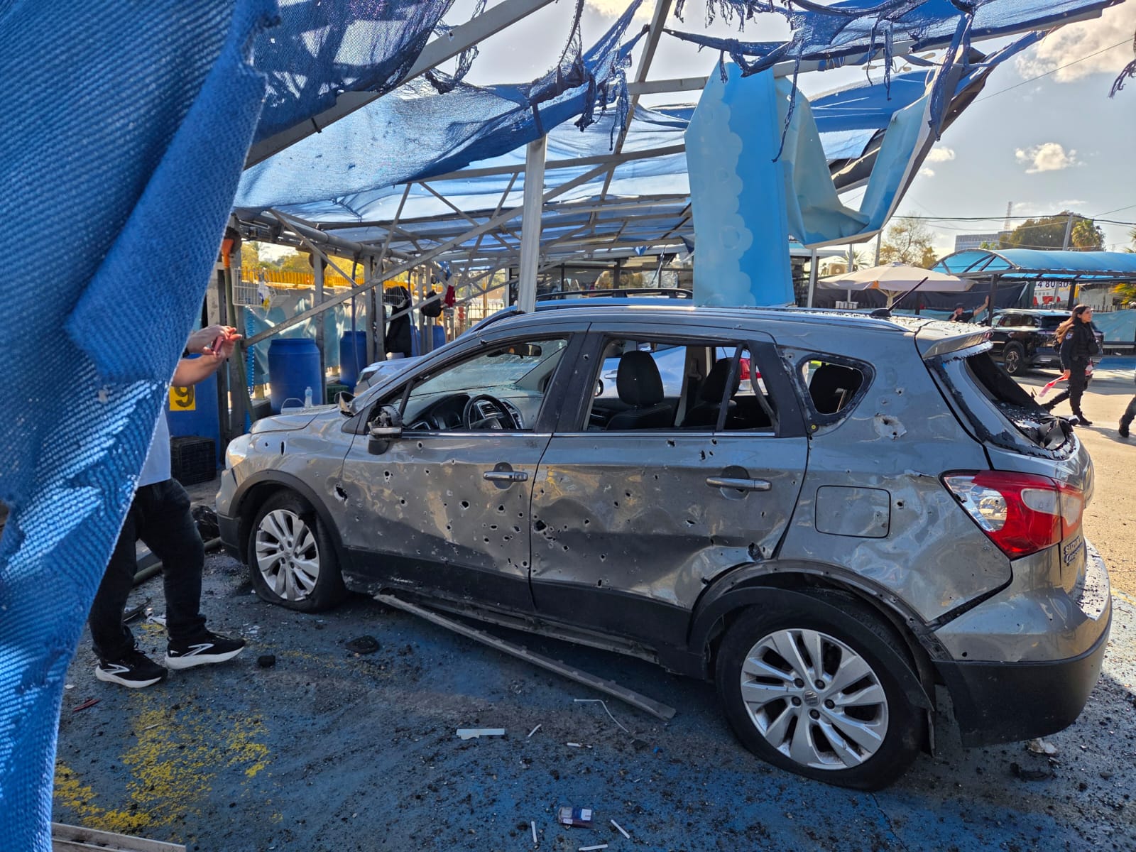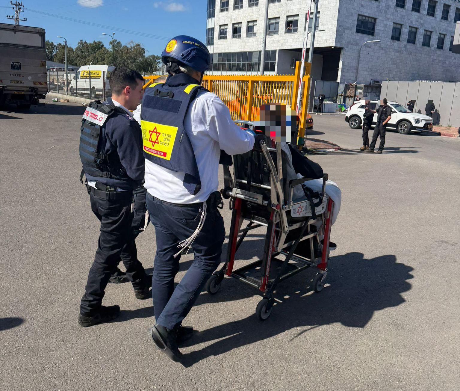 פראמדיק מד”א אייל עוקשי סיפר: “כשהגענו למקום ראינו שברי מבנה פזורים סביב, ועוברי אורח רבים עומדים נסערים סביב פצוע. מיד איתרנו גבר כבן 25 שנפגע מרסיסים. הוא היה בהכרה, אך היה כאוב מאוד. התחלנו להעניק לו טיפול רפואי ראשוני בזירה, ולאחר ייצוב מצבו פינינו אותו לבית החולים כשמצבו מוגדר בינוני. במקביל, צוותי מד”א נוספים העניקו טיפול לשני פצועים שסבלו מפציעות קלות מרסיסים, ופינו אותם לבית החולים כשמצבם קל”.