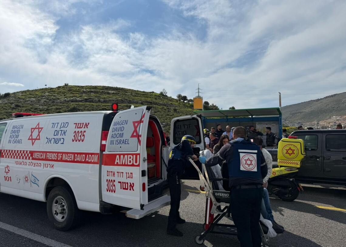 חובש רפואת חירום מיחידת האופנועים של מד”א פראס סלאמה סיפר: “הגענו לתחנת אוטובוס וראינו שני גברים כבני 50, כשהם בהכרה מלאה וסובלים מדימום קל בכתף ובראש. הם סיפרו לנו שנפגעו משברי יירוט ומהדף כתוצאה מנפילה בסמוך לתחנה. חבשנו אותם במקום, ותוך המשך הטיפול פינינו אותם לבית החולים כשמצבם מוגדר קל ויציב”.