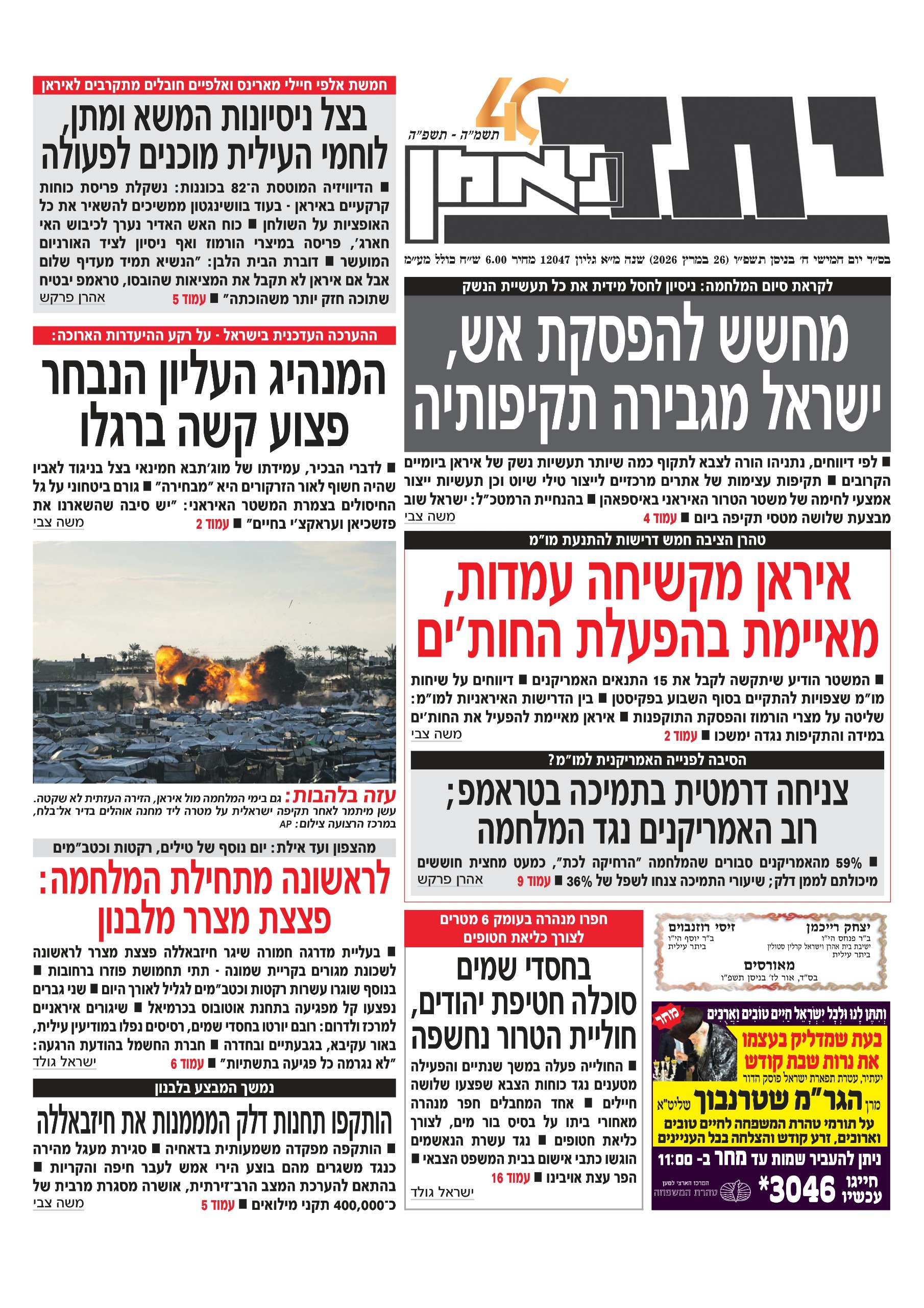 ח׳ ניסן תשפ״ו 26.03.26 | 08:50