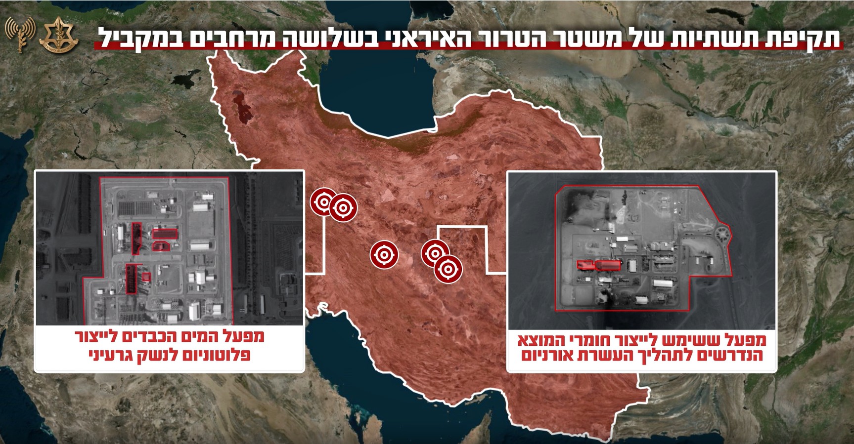 צה”ל גם תקף מפעל באיראן ששימש לייצור חומרים הנדרשים לתהליך העשרת אורניום, המפעל הינו היחיד מסוגו באיראן, בו חומרי גלם שנחצבים מהאדמה עוברים תהליכי עיבוד מכניים וכימיים על מנת שבהמשך ישמשו כחומרי מוצא להעשרת האורניום. לאחר שזוהו ניסיונות שיקום: צה”ל תקף את מפעל המים הכבדים באראכ – תשתית מפתח לייצור פלוטוניום לנשק גרעיני.