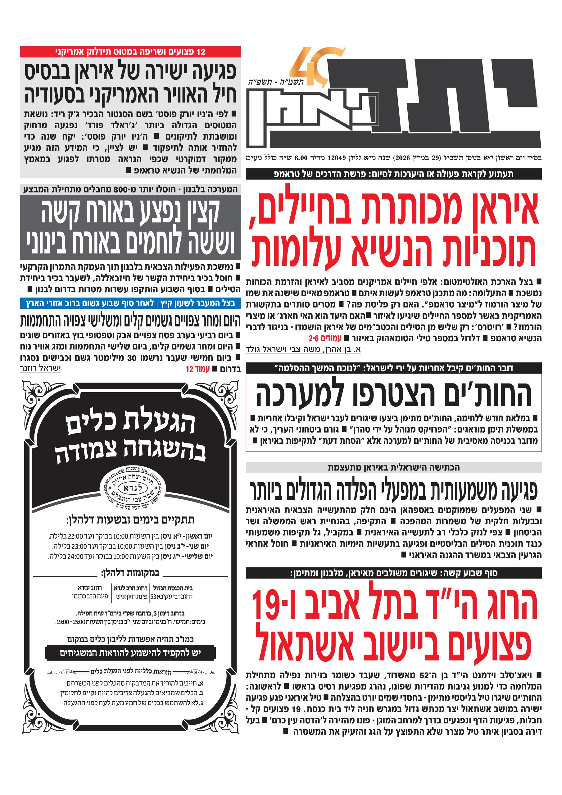 י״א ניסן תשפ״ו 29.03.26 | 08:50