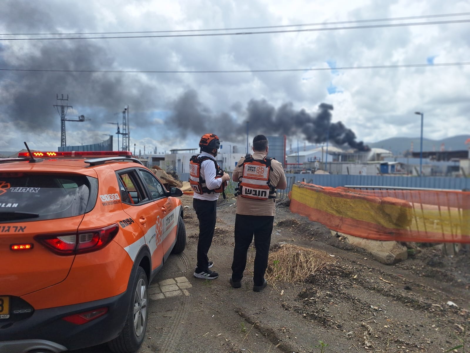 כוחות של כבאות והצלה ממחוז חוף, בסיוע יחידות נוספות, פועלים בשעה זו באירוע של פגיעה במבנה תעשייה ופגיעה במכלית דלק במתחם בתי הזיקוק (בז”ן) שבמפרץ חיפה.