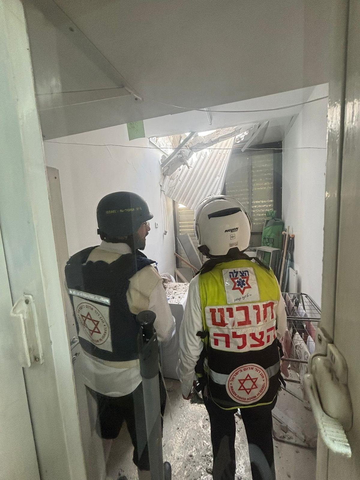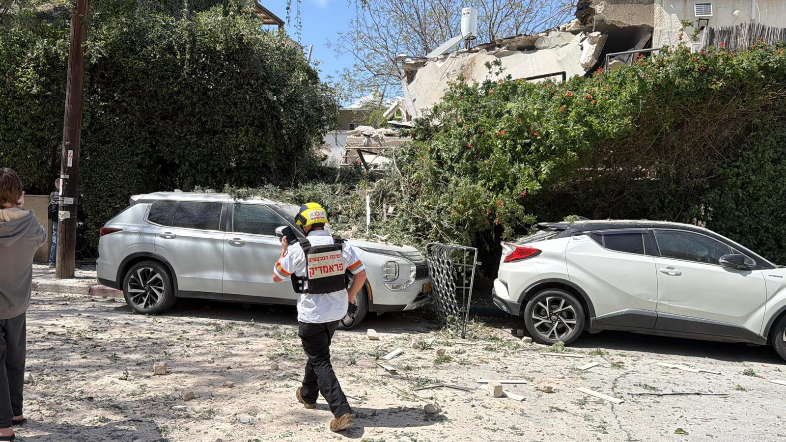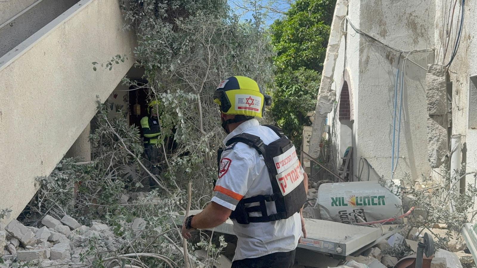 פראמדיק מד”א ענבר גרין סיפר: “כשהגענו למקום ראינו הרס בקומה העליונה בבניין. גבר כבן 44 התהלך ברחוב בסמוך לבניין כשהוא בהכרה וסובל מפגיעת הדף. הענקנו לו טיפול רפואי ראשוני ואנחנו מפנים אותו לבית החולים בניידת טיפול נמרץ כשמצבו בינוני. אנחנו מבצעים כרגע סריקות בבניין על מנת לוודא שאין נפגעים נוספים שנדרשים לטיפול רפואי”.
