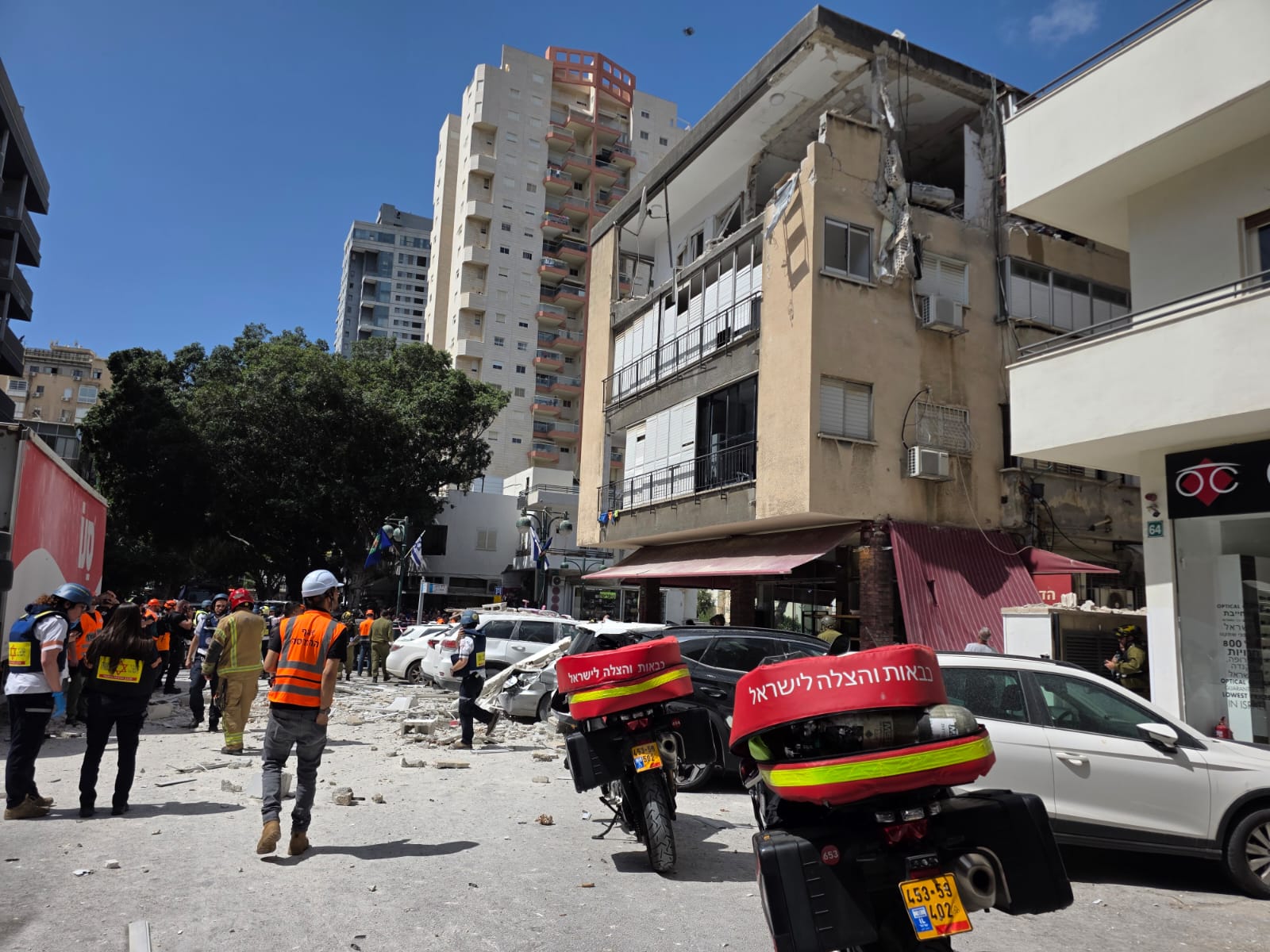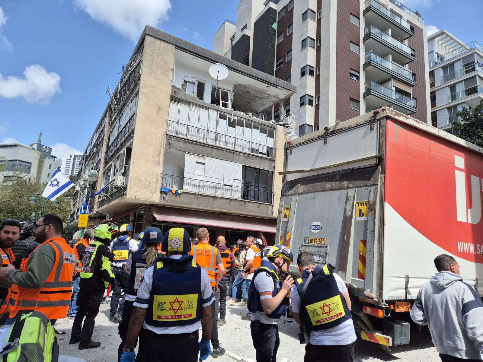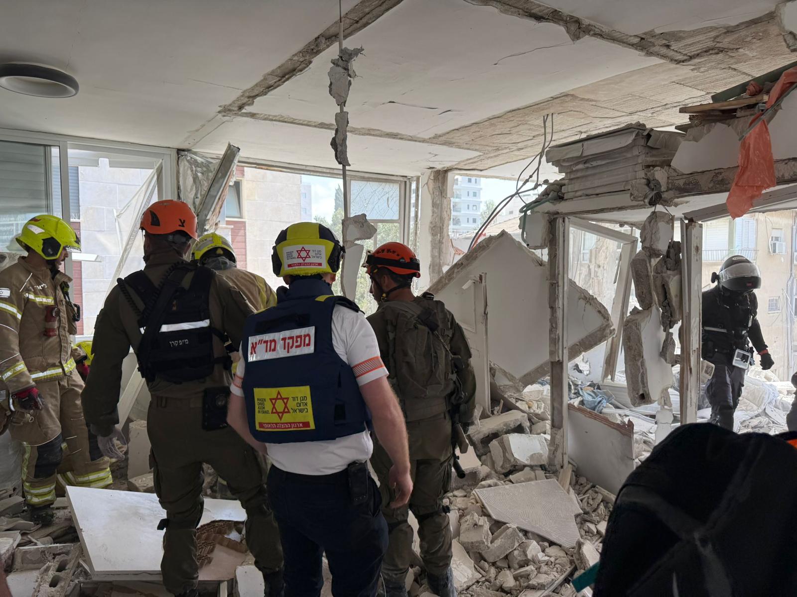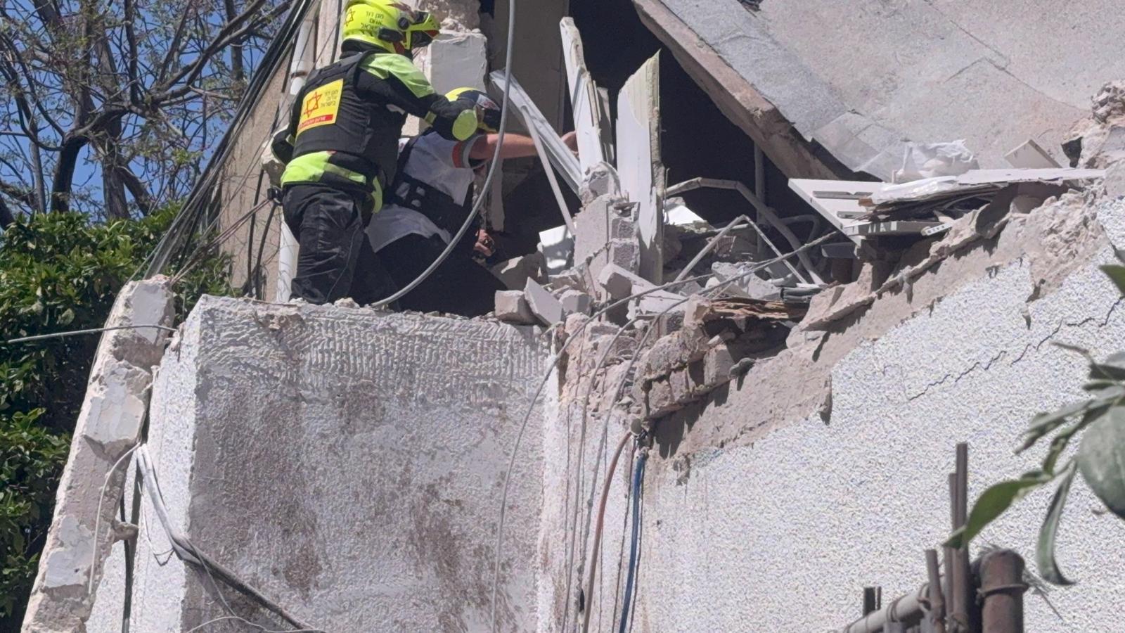 פראמדיק מד”א ענבר גרין סיפר: “כשהגענו למקום ראינו הרס בקומה העליונה בבניין. גבר כבן 44 התהלך ברחוב בסמוך לבניין כשהוא בהכרה וסובל מפגיעת הדף. הענקנו לו טיפול רפואי ראשוני ואנחנו מפנים אותו לבית החולים בניידת טיפול נמרץ כשמצבו בינוני. אנחנו מבצעים כרגע סריקות בבניין על מנת לוודא שאין נפגעים נוספים שנדרשים לטיפול רפואי”.
