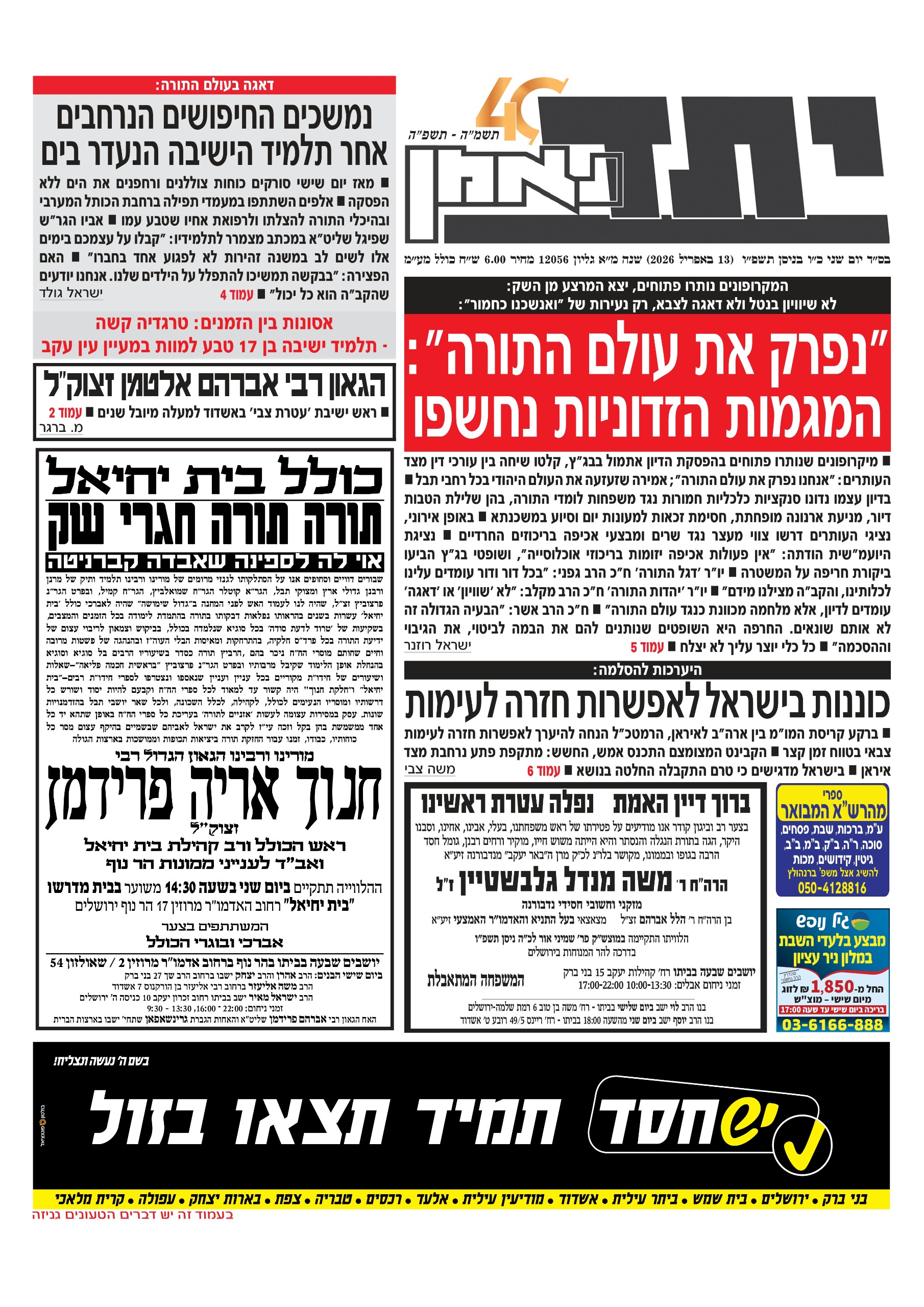 כ״ו ניסן תשפ״ו 13.04.26 | 00:35