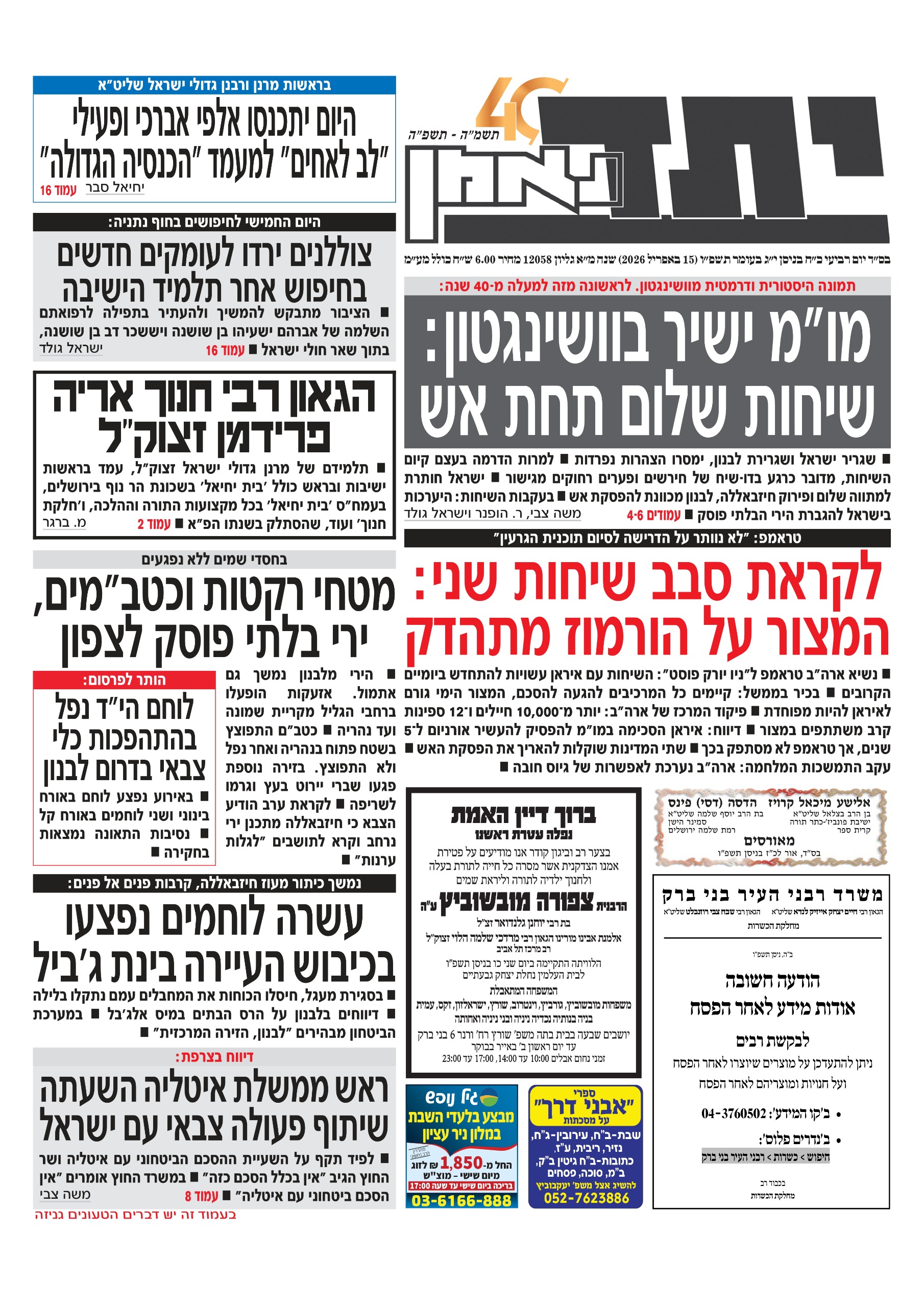כ״ח ניסן תשפ״ו 15.04.26 | 01:10