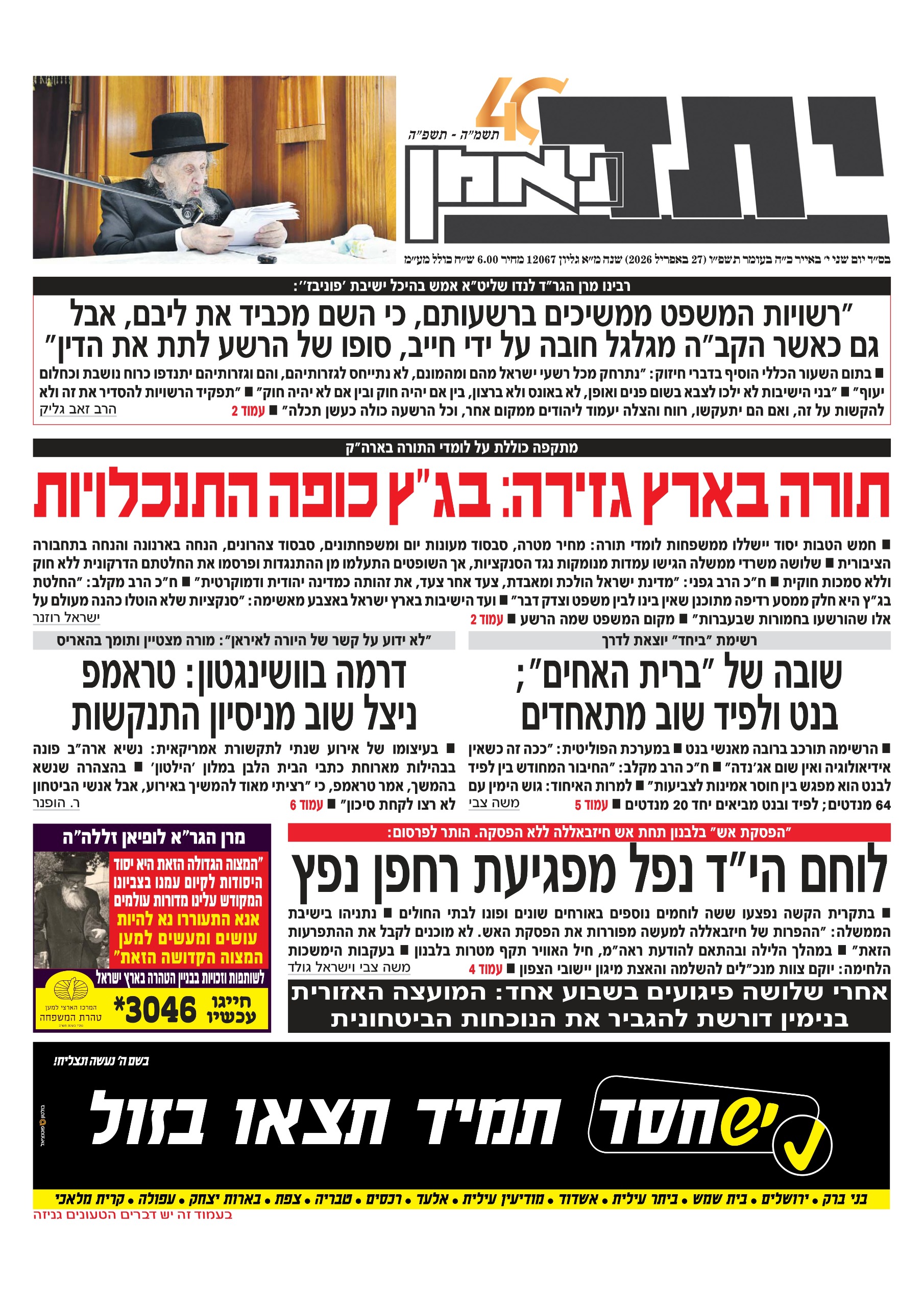 ד׳ אייר תשפ״ו 21.04.26 | 01:06