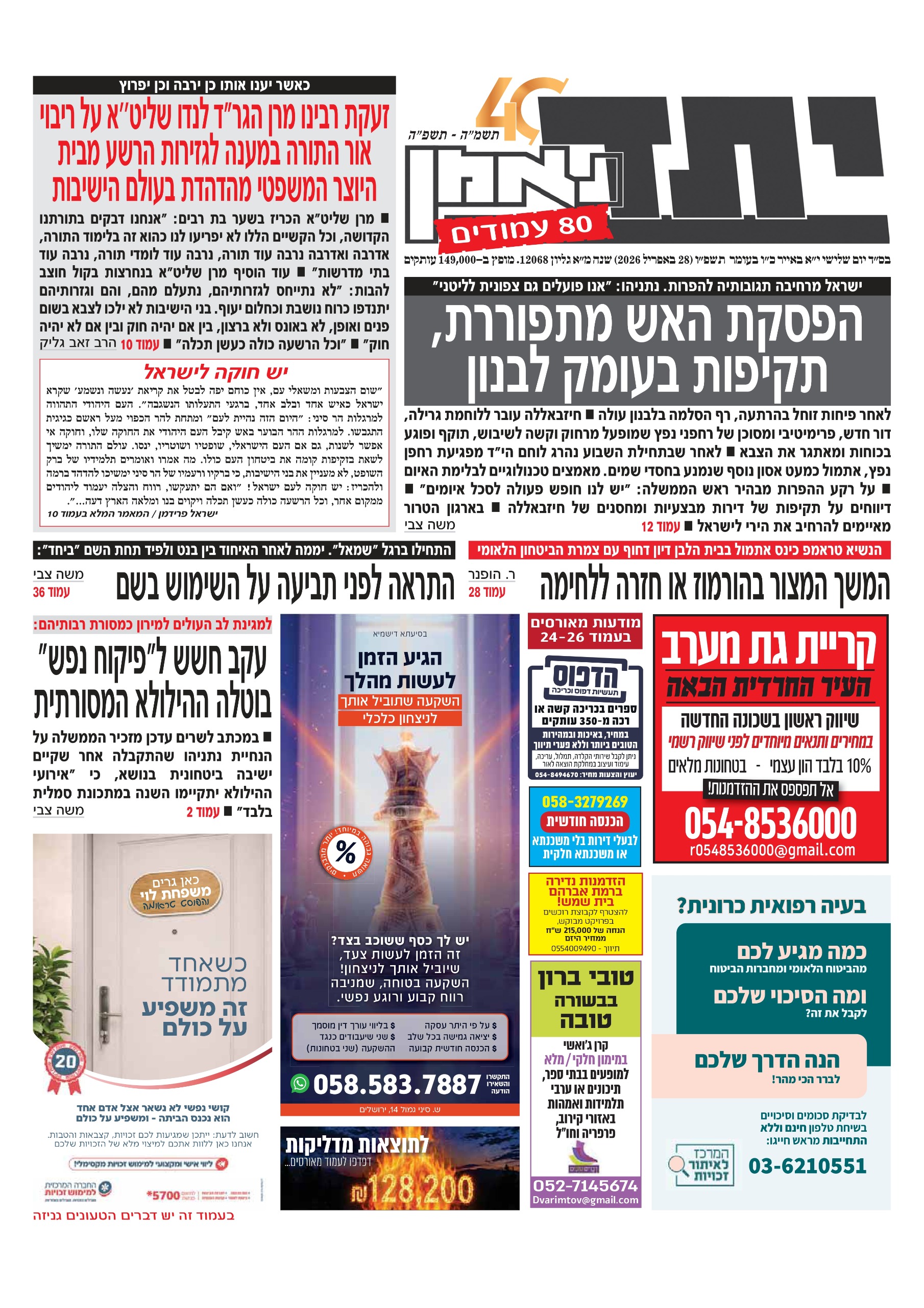 י״א אייר תשפ״ו 28.04.26 | 00:50