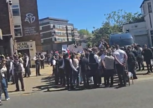 עם הגעתו של סטארמר לשכונה, הוא התקבל בקריאות בוז וצעקות שהוא פוגע ביהודים.