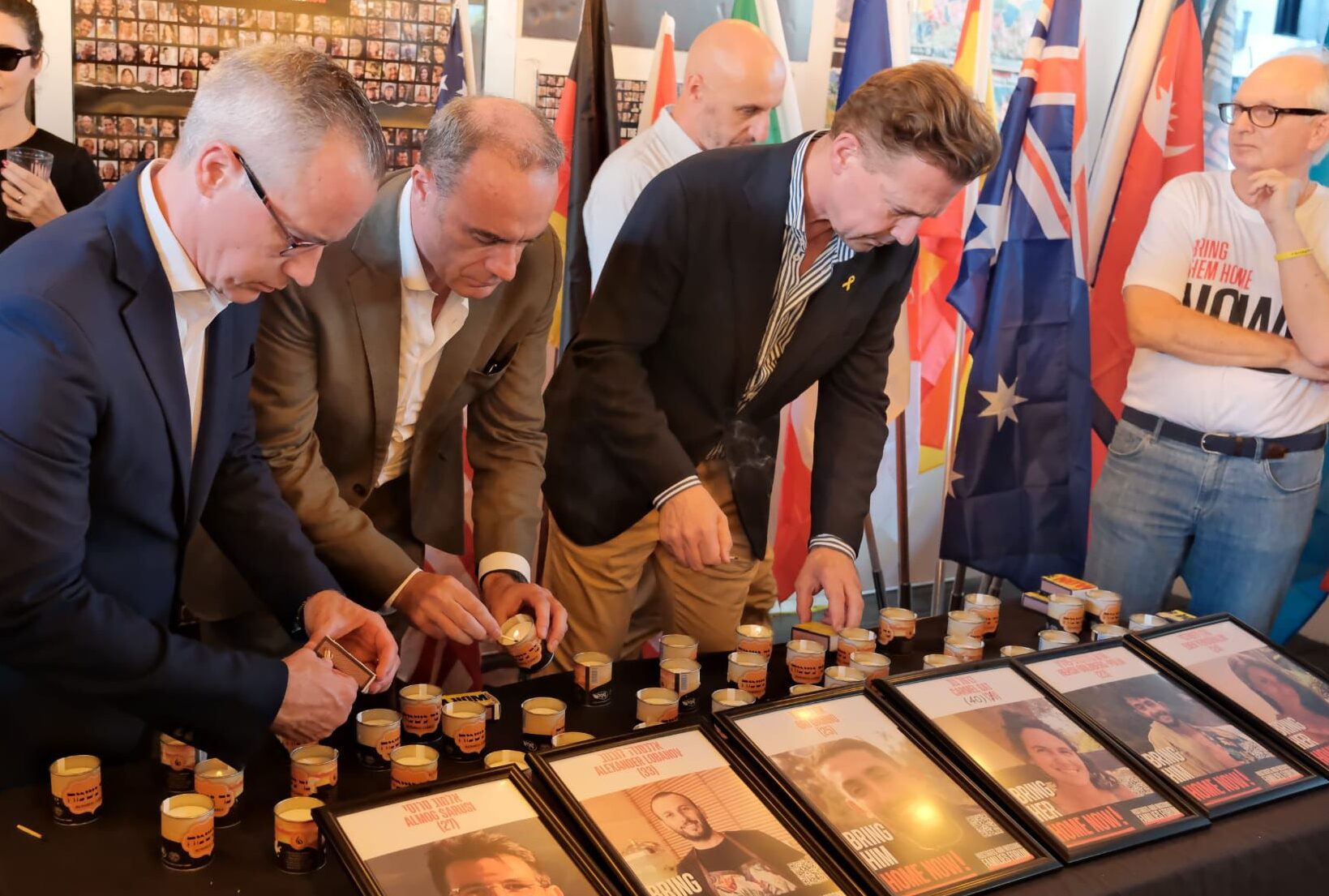 עשרות שגרירים ודיפלומטים הדליקו נרות נשמה במטה המשפחות לזכר 6 החטופים שנרצחו בשבי והוחזרו היום לישראל