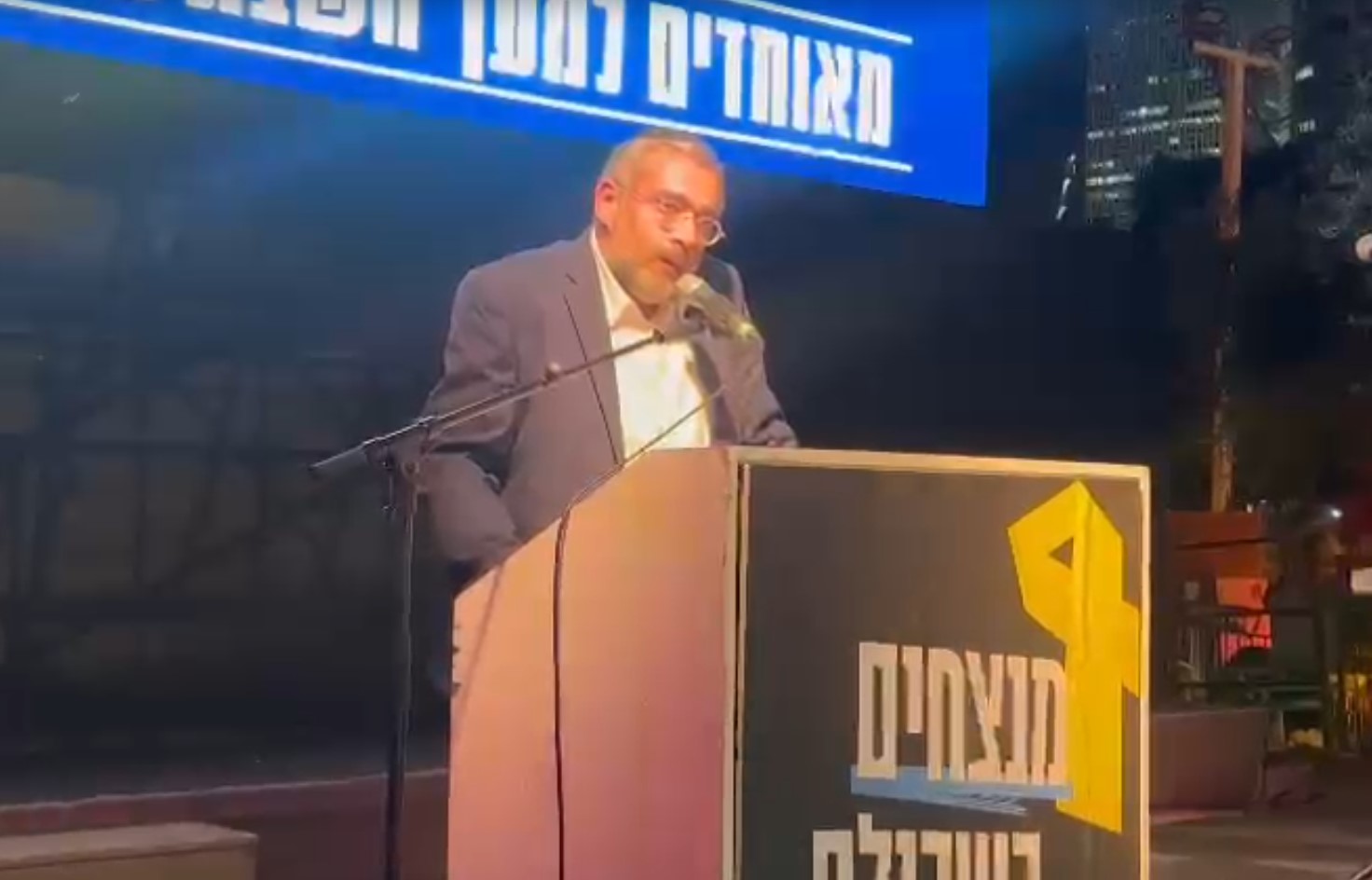 ״באתי לכאן לזעוק את זעקת 101 החטופים והמשפחות”, אמר דנינו. “לי כבר אין את הפריבילגיה לעמוד מנגד. לנו קרה נס בשנה האחרונה. לצערנו נהיה נס להביא גופה שלמה לקבורה. זו פתאום נהייתה פנטזיה של משפחות. מחריד”.