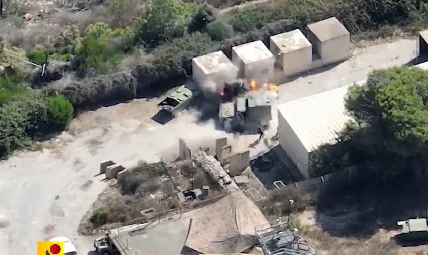 צפו: באין מפריע חיזבאללה מעל מוצב מפוצץ רחפן נפץ