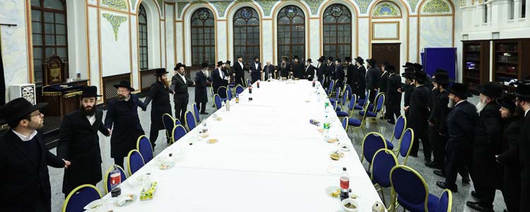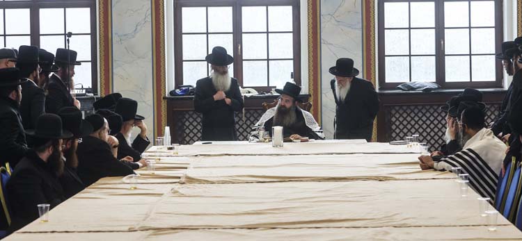 לאחר מכן נפתח ברוב רושם הדינר המרכזי של ועידת “יחידי סגולה” שנערך ברוב פאר והדר בהיכל הקלויז העתיק בשילוב סעודת ראש חודש. את המעמד הנחה יו”ר הועידה הנגיד המפואר הרב אהרן נאה מארה”ב, אשר קידם בברכה את המשתתפים אשר נקבצו ובאו מכל קצוות תבל.