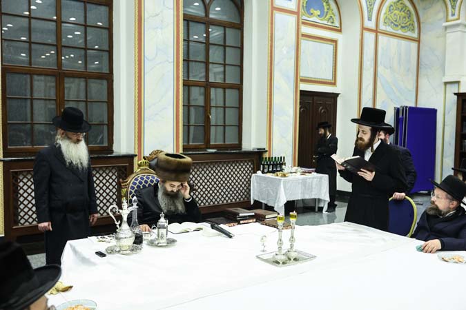 לקראת ערב נכנס האדמו”ר שליט”א לשולחן הטהור שנערך ברב עם בהיכל הקלויז קדישא, ובו השתתף גם אחיו האדמו”ר מסאדיגורה שליט”א מלונדון. למחרת השתתף האדמו”ר בנסיעה לקברי אבות בעיירות טשורטקוב והוסיאטין הסמוכות, שם נמצאים ציוניהם של דו”ז הרה”ק רבי דוד משה אדמו”ר הזקן מטשורטקוב זיע”א וזקנו הרה”ק רבי מרדכי שרגא אדמו”ר הזקן מהוסיאטין, זכותם יגן עלינו אמן.