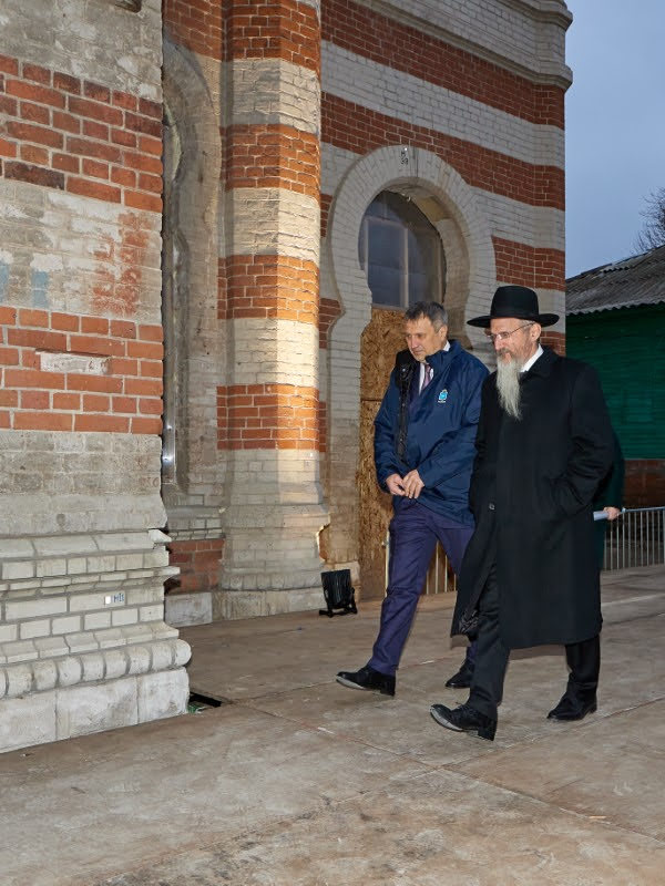 לטיסה ממוסקבה התלווה הנגיד מר מיכאל לסינסקי, שמקור משפחתו מעיר גדולה זו, ומזה מספר שנים עומד בראש התומכים הגדולים והעיקריים, לצדם של שותפים רבים ויקרים, בשיפוץ בניין בית הכנסת הגדול, ועוד ידו נטויה עד לסיום המתוכנן בעוד כשנתיים ימים.