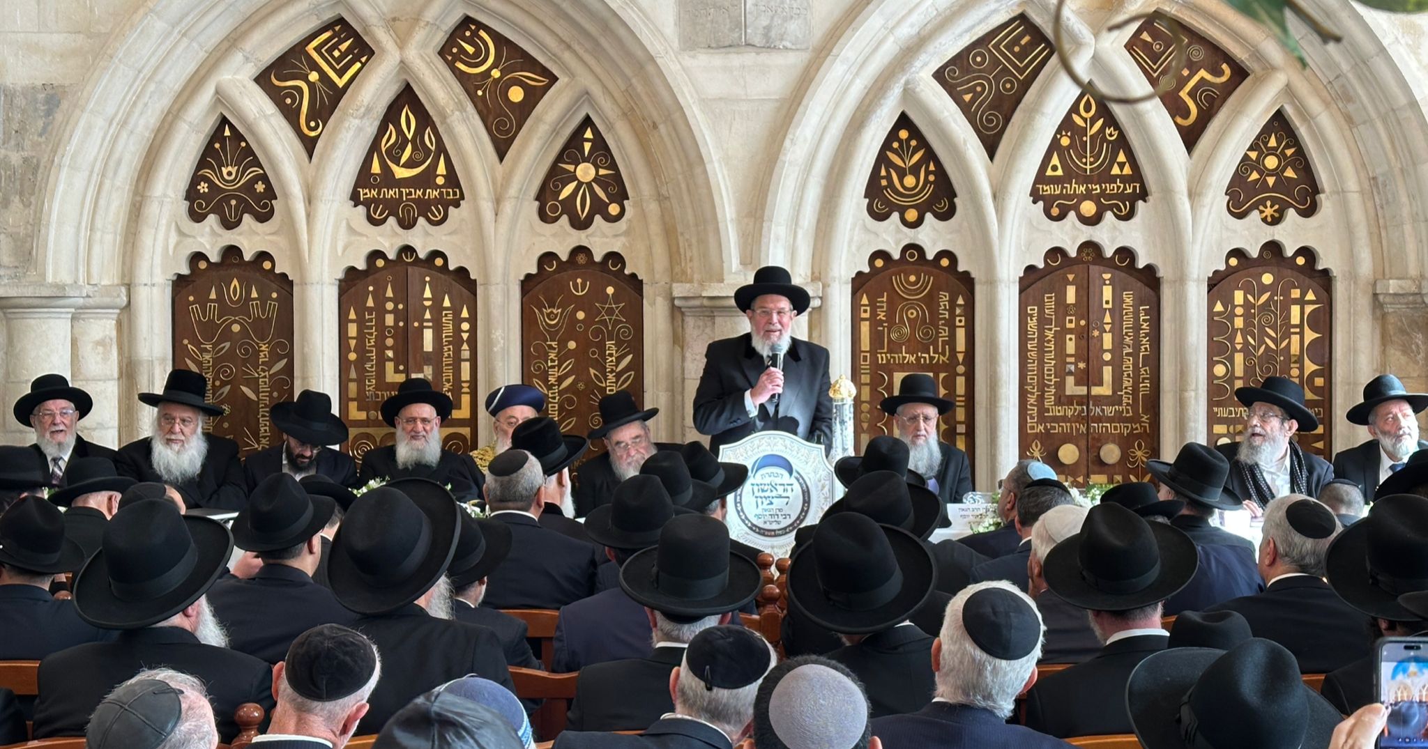 הקהל הרב עומד על רגליו ומקבל את פני מרן בהתרגשות גדולה. במעמד משתתפים חברי המועצת מו”ר הגר”א סאלים, הגר”ש בן שמעון, הגר”ר אלבז, הראשל”צ הגרש”מ עמאר, הגר”ב שמואלי, האדמו”ר רבי פנחס אבוחצירא, הגרי”מ לאו, הגר”א יוסף, הגר”ק בר, הגר”א מדינה, יו”ר ש”ס אריה דרעי, נשיא המדינה, שרים ואישי ציבור נכבדים.