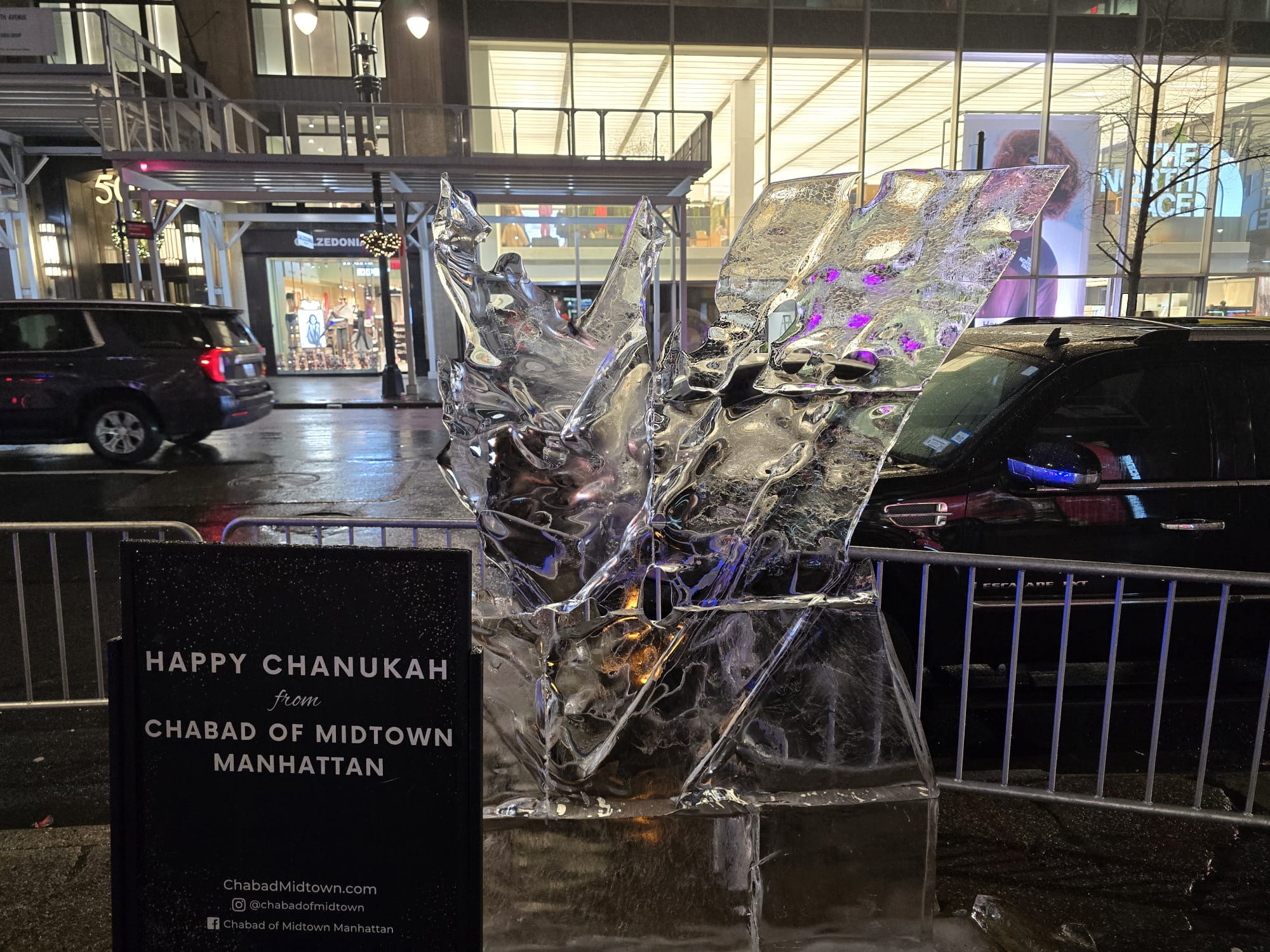 ביום חמישי האחרון נערכה אטרקציה בלב מנהטן, בשדה החמישית היוקרתית, שעה ששלוחי חב”ד הביאו אמן פיסול בקרח, שפיסל חנוכיית ענק בגוש קרח.