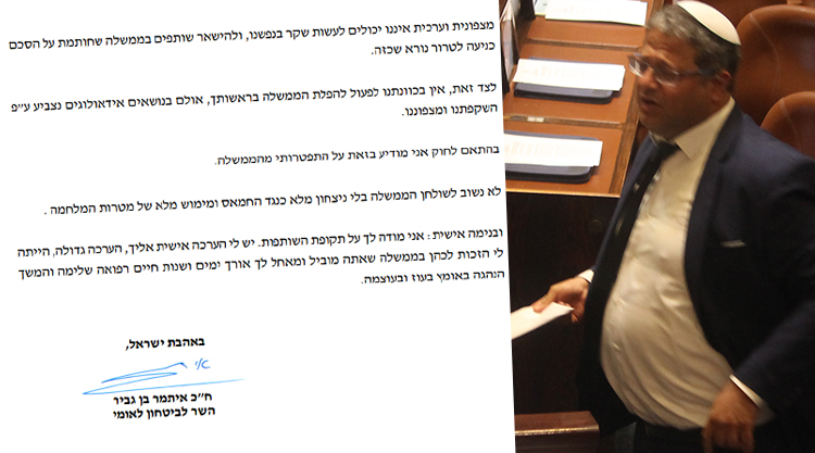 לאחר ההבטחה שייצאו מהממשלה נוכח העסקה, הבוקר (ראשון) שלחו שרי ‘עוצמה יהודית’ מכתבי התפטרות.