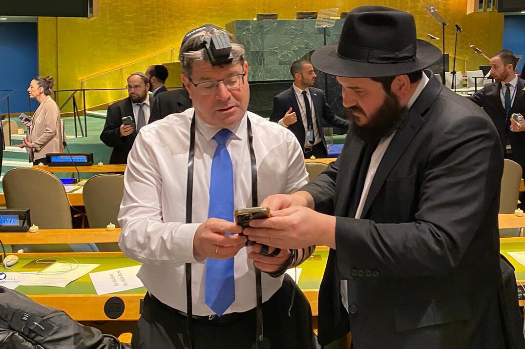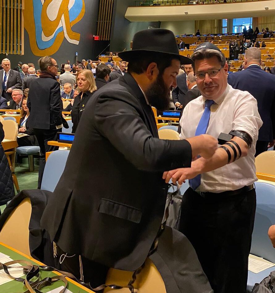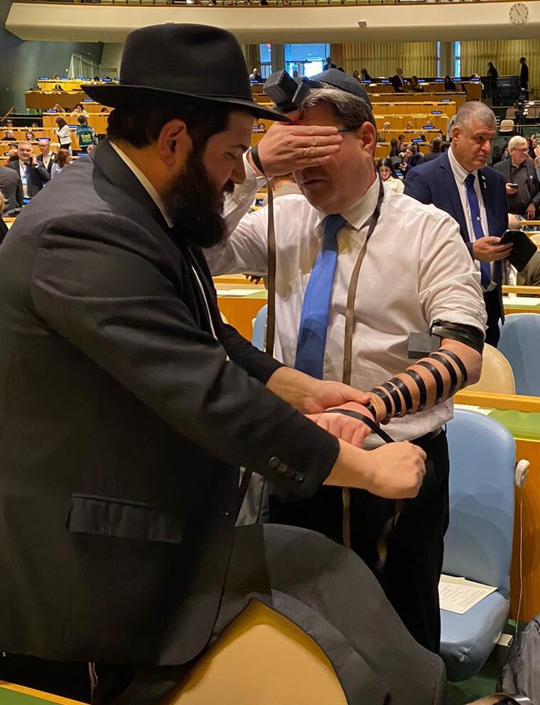 קונסול ישראל בניו יורק, אופיר אקוניס, הניח תפילין במרכז מליאת האו”ם, דקות לפני שנשיא המדינה יצחק הרצוג, נשא את נאומו לציון 80 שנה לשחרור מחנה אושוויץ.