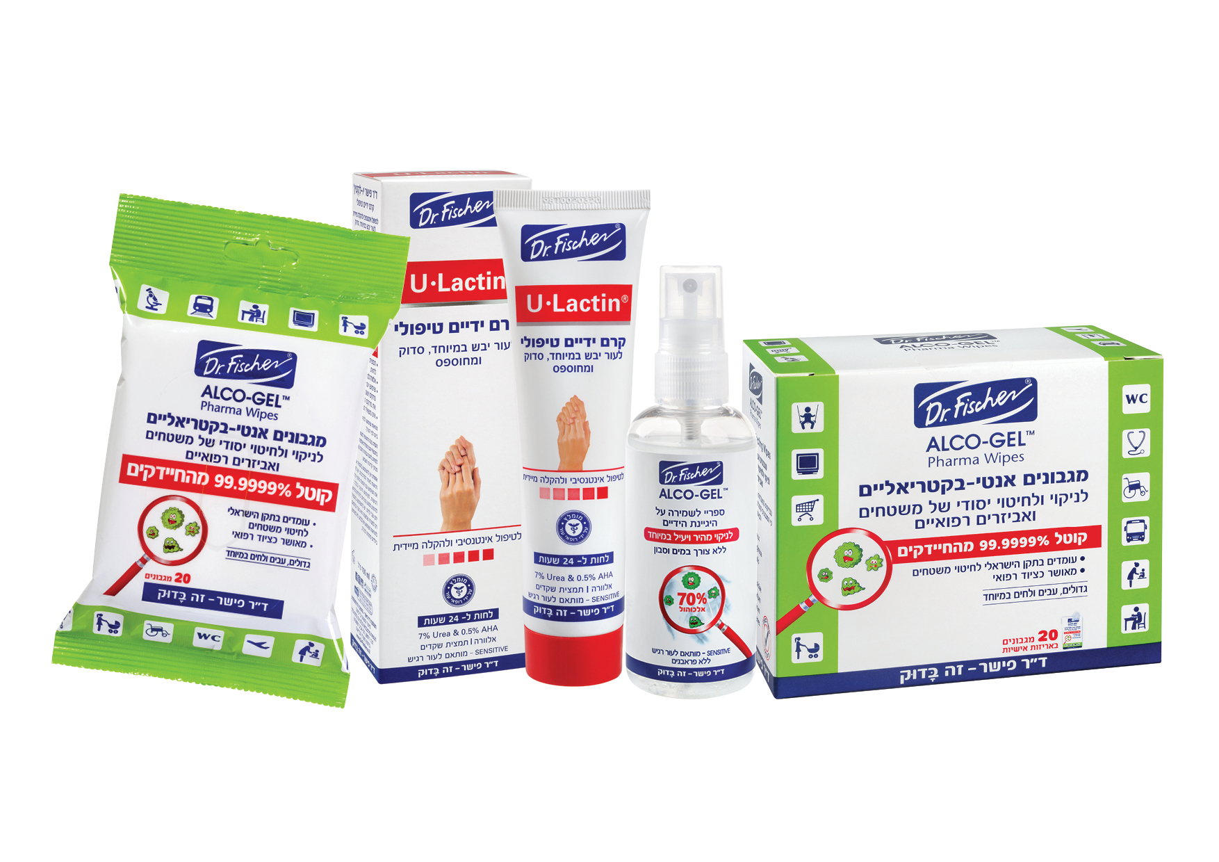 סדרת אלכו-ג’ל (Alco-Gel), אשר פותחה במעבדות הפיתוח והמחקר של ד”ר פישר, הינה הפתרון הטוב ביותר להפחתת הסיכון להידבקות במחלות ולסיוע בשמירה על הבריאות בבית ומחוצה לו. תכשירי הסדרה מבוססים על נוסחאות ייחודיות יעילות במיוחד המשלבות אלכוהול בריכוז גבוה (70% ו- 75%) לצד מרכיבים נוספים התורמים להגברת הפעילות והיעילות כנגד חיידקים ושמירה על לחות העור. הסדרה כוללת מגוון רחב של תכשירים ופתרונות לשמירה על היגיינת הידיים: ג’ל, ספריי, קרם ומגבונים במגוון גדלים כולל אריזות אישיות ומוקטנות הניתנות לנשיאה נוחה בכל תיק.