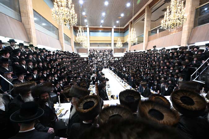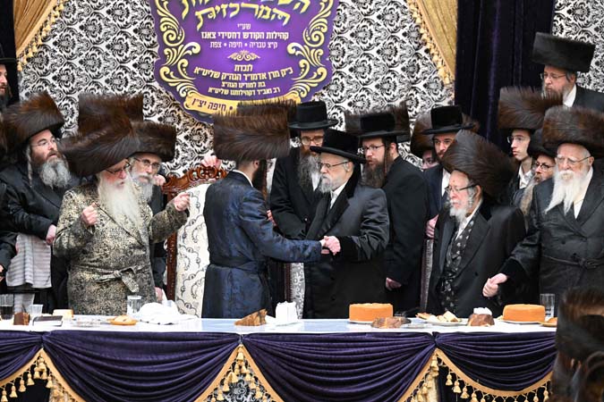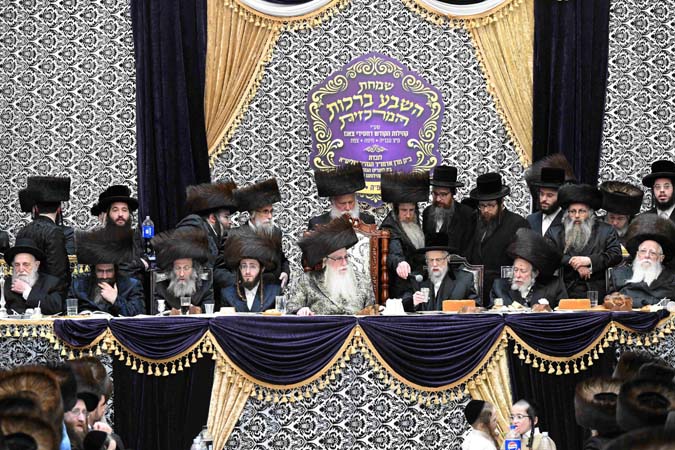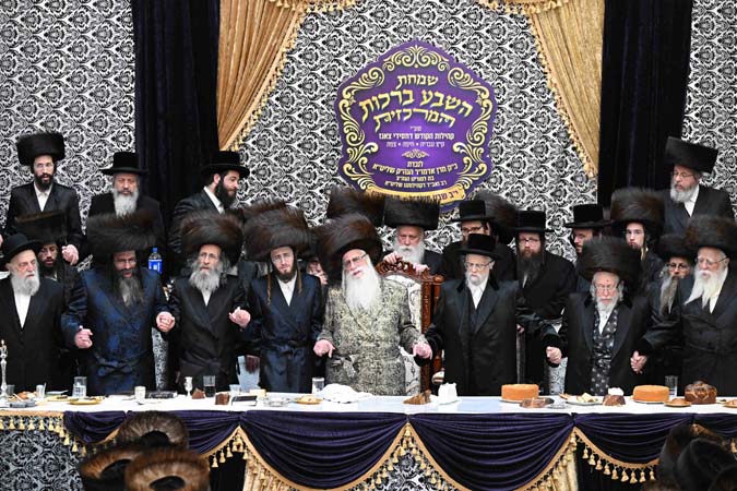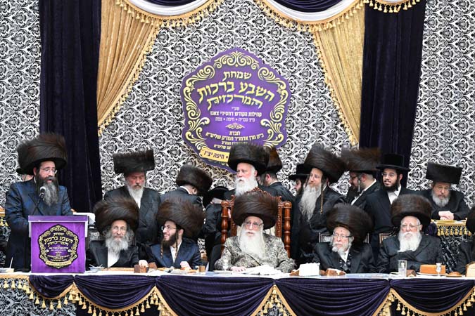 כאלף איש השתתפו הערב (שני) בשמחת שבע הברכות בבית הכנסת הגדול – בעלזא בחיפה לנכדת כ”ק מרן האדמו”ר מצאנז שליט”א, בת לבנו הגה”צ הרב אברהם הלברשטאם שליט”א, רב קריית צאנז בטבריה, עם החתן בן הגה”צ רבי אלימלך בידרמן שליט”א.