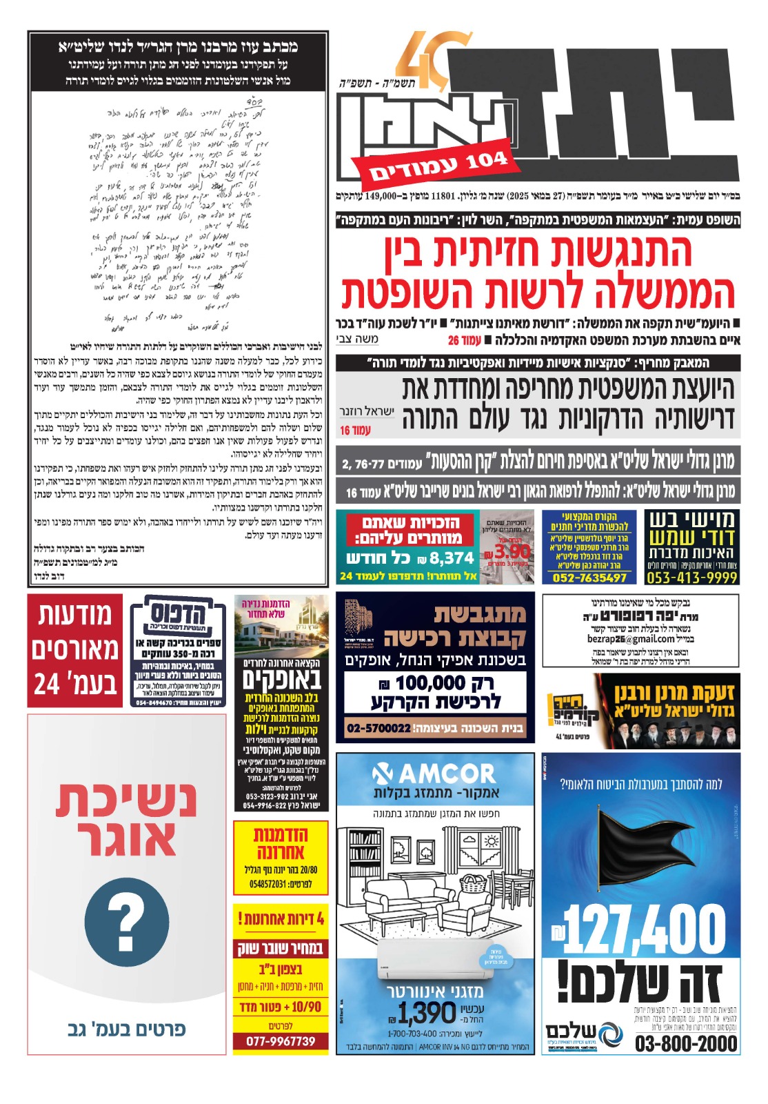 צפו בכותרות העיתונים החרדים לבוקר יום שני