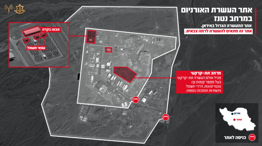במהלך ליל שבת מטוסי קרב של חיל האוויר, בהכוונה מודיעינית מדויקת של אגף המודיעין, תקפו את אתר העשרת האורניום של המשטר האיראני במרחב נטנז. מדובר באתר העשרת האורניום הגדול ביותר באיראן אשר פועל במשך שנים להשגת נשק גרעיני ומכיל בו את התשתיות הנדרשות להעשרה לרמה צבאית.