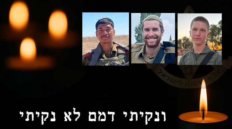 הלילה (שני) הותר לפרסום שמם של שלושה חיילי צה”ל שנהרגו בצהרים בצפון רצועת עזה. השלושה: סמל ראשון שהם מנחם הי”ד בן 21, ממושב ירדנה. סמל שלמה יקיר שרם הי”ד בן 20, מאפרת, וסמל יולי פקטור הי”ד בן 19, מראשון לציון, שלושתם לוחמי שריון בגדוד 52, עוצבת ‘עקבות הברזל׳ יהי זכרם ברוך. מבאירוע הקשה נפצעו עוד מספר חיילים ביניהם קצין באורח קשה.