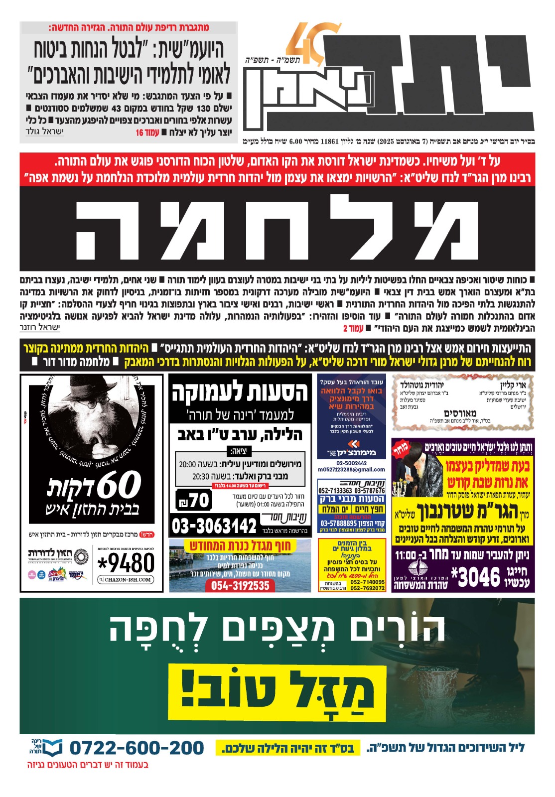 צפו בכותרות העיתונים החרדים לבוקר יום שישי
