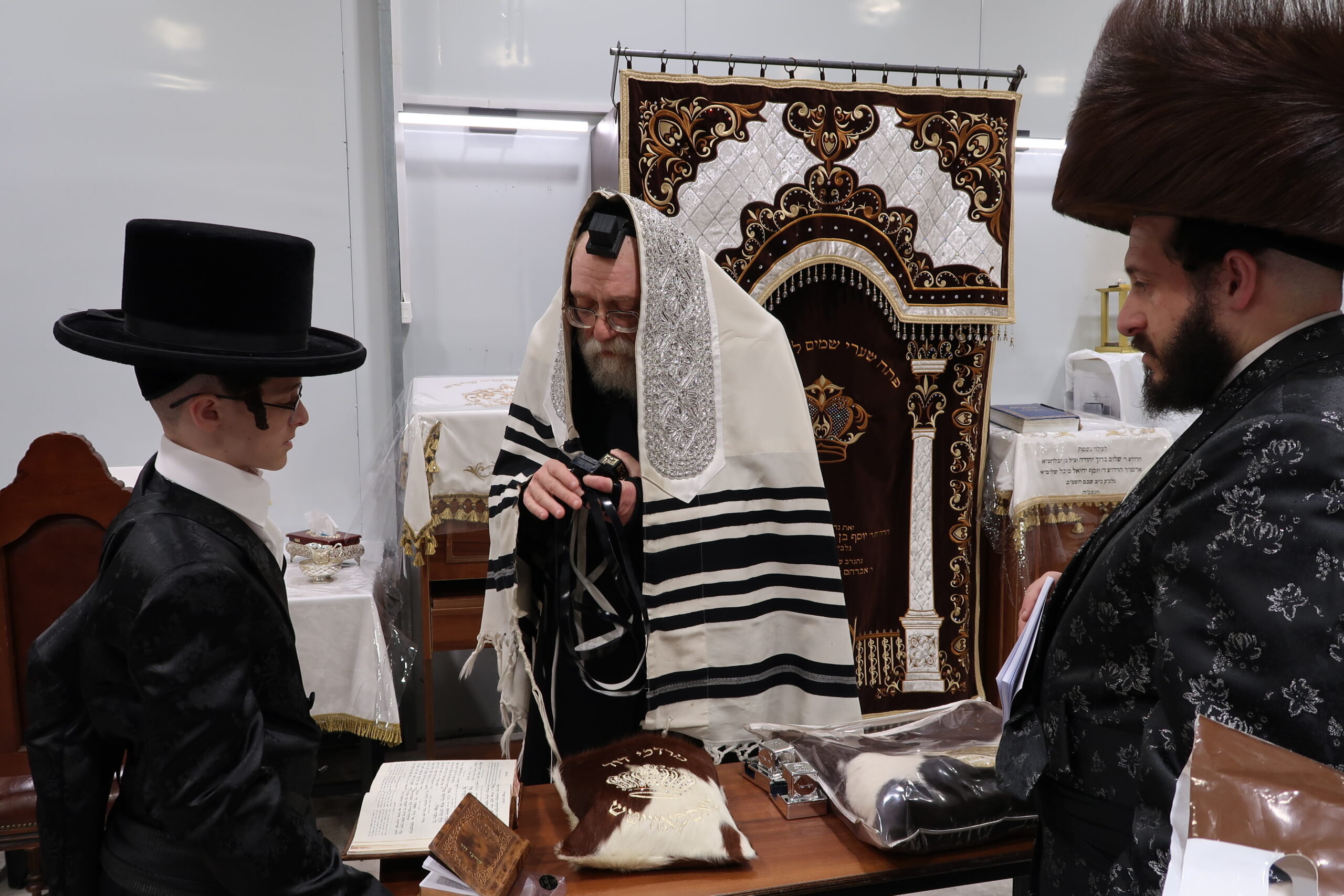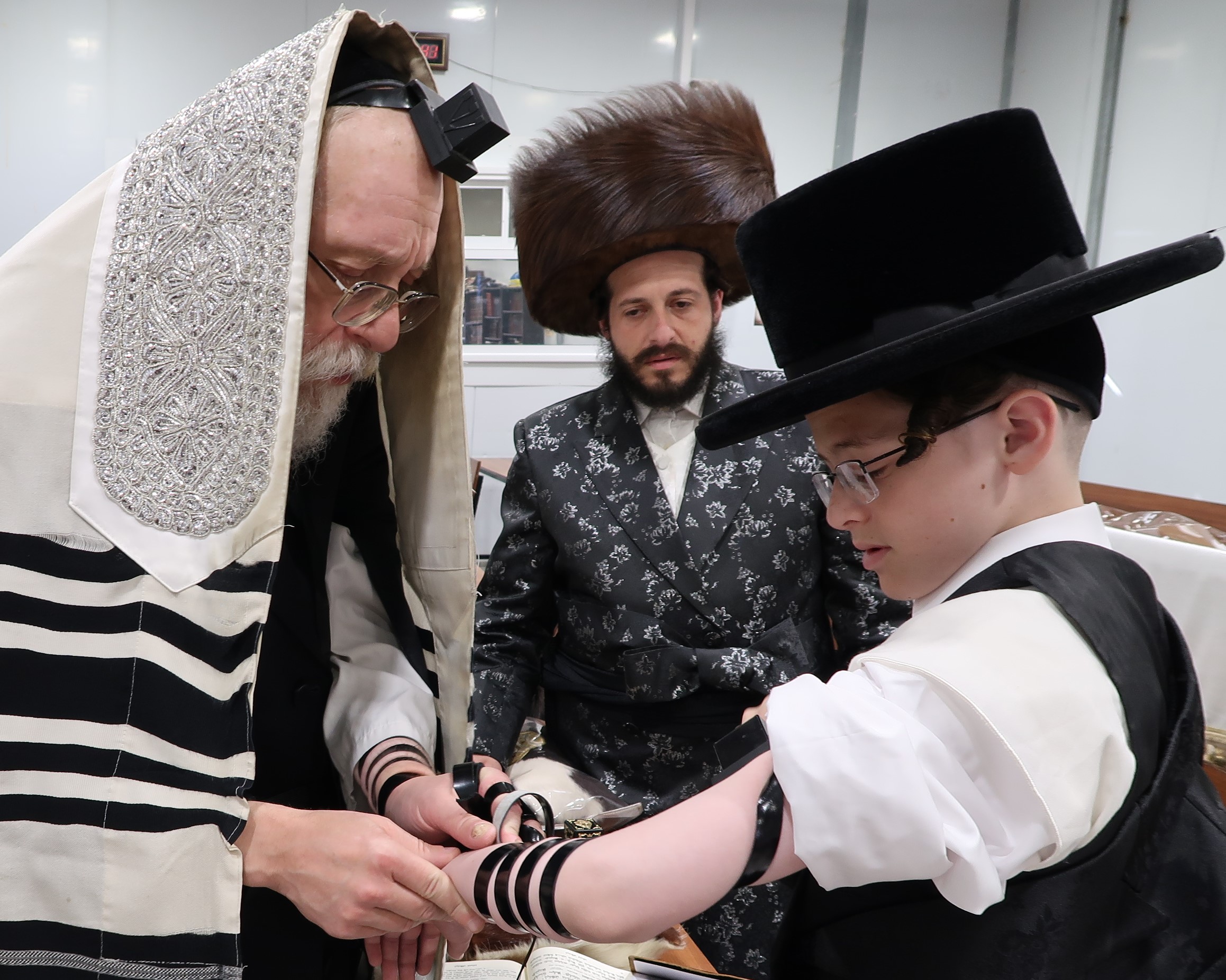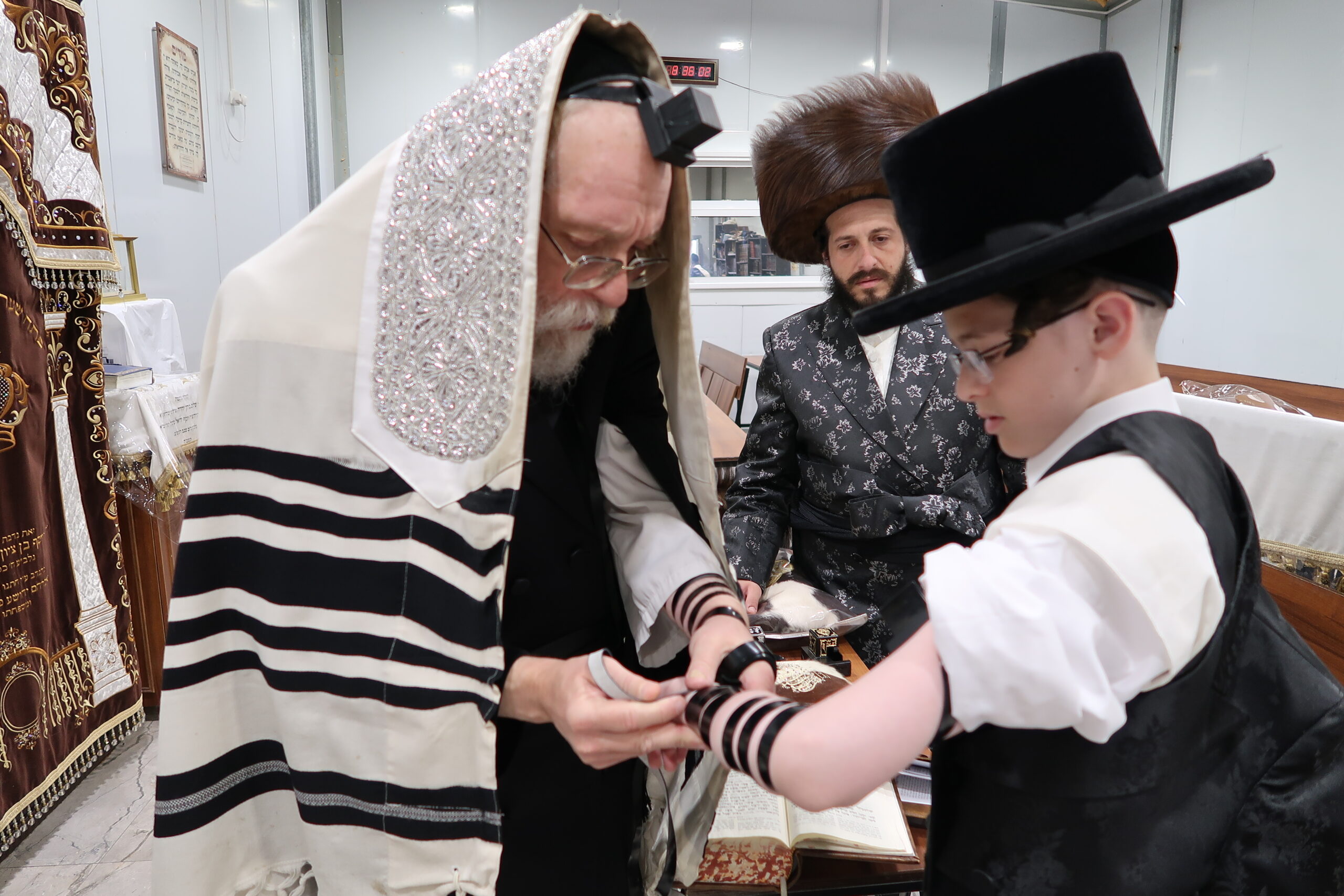 מעמד ‘הנחת התפילין’ לנכד כ”ק האדמו”ר משאץ דראהביטש שליט”א