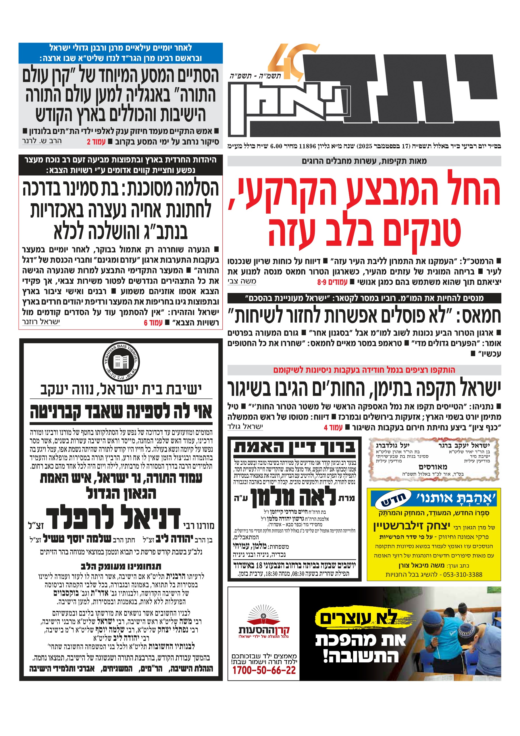 • צפו בכותרות העיתונים החרדים לבוקר יום שני