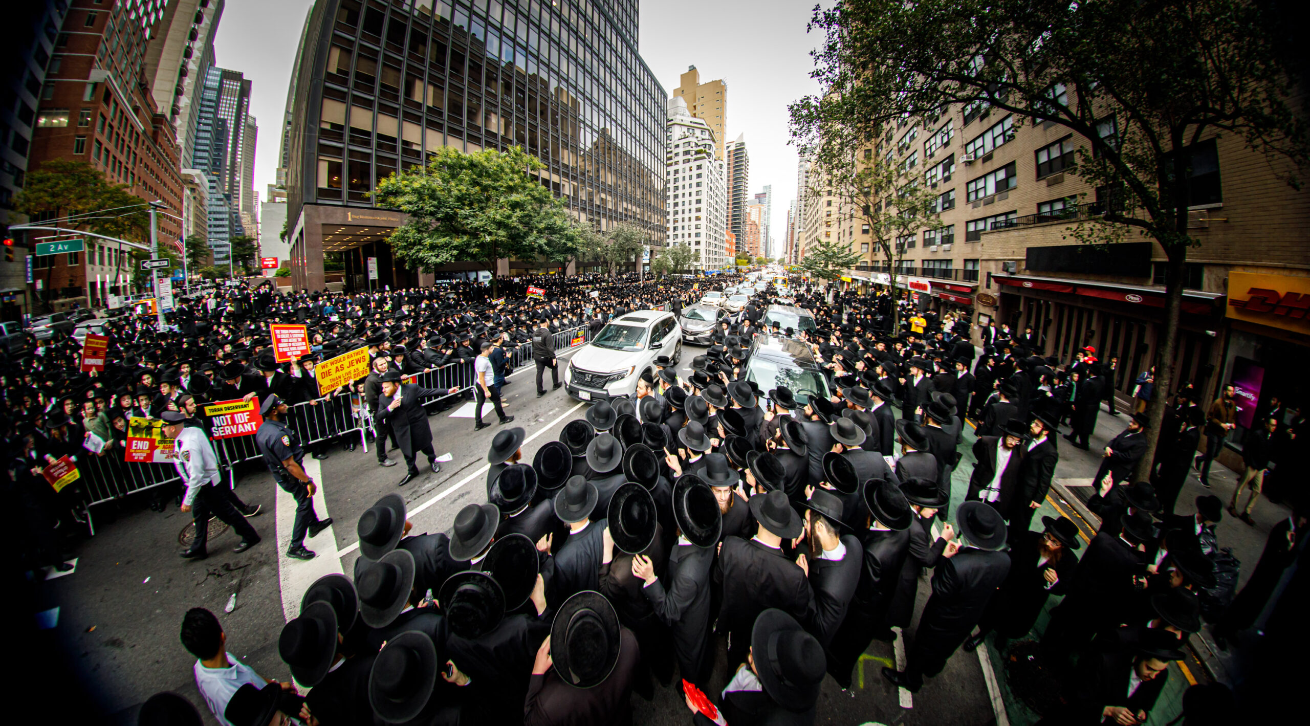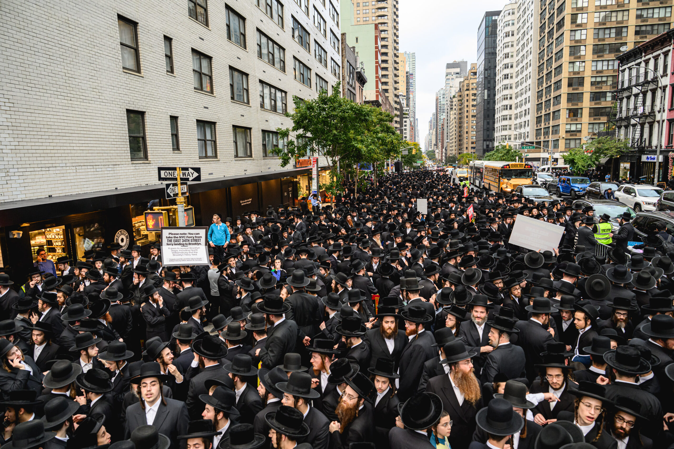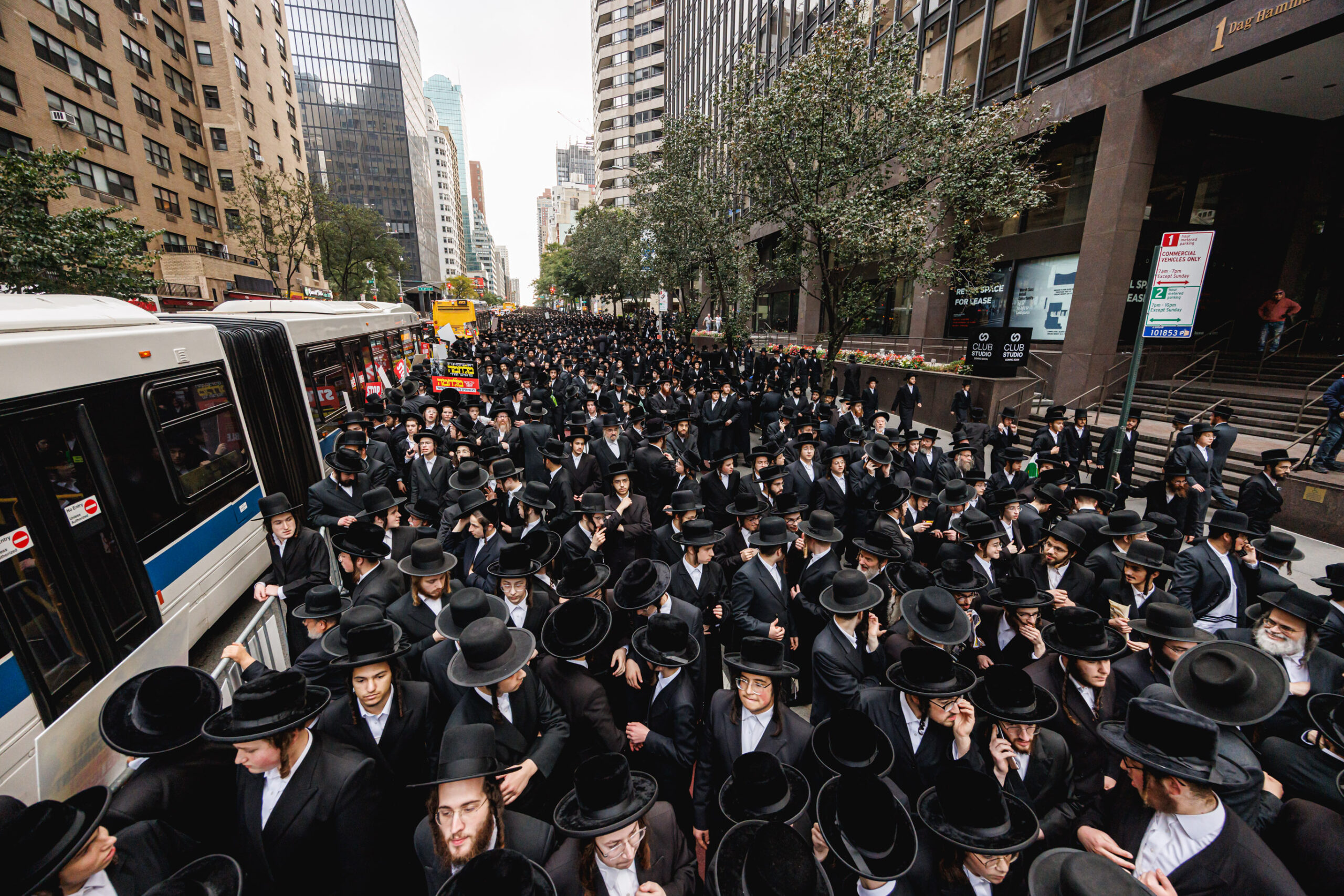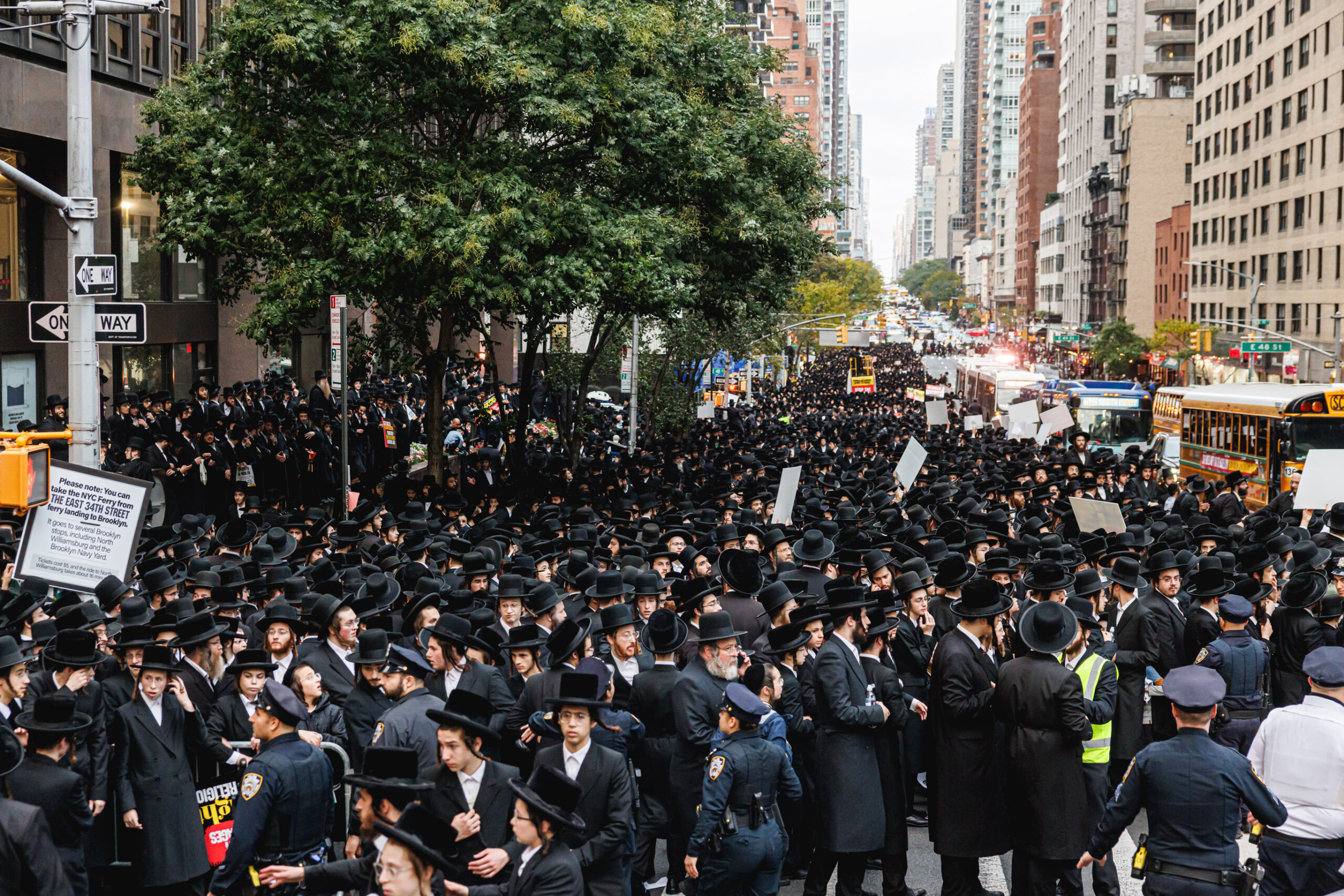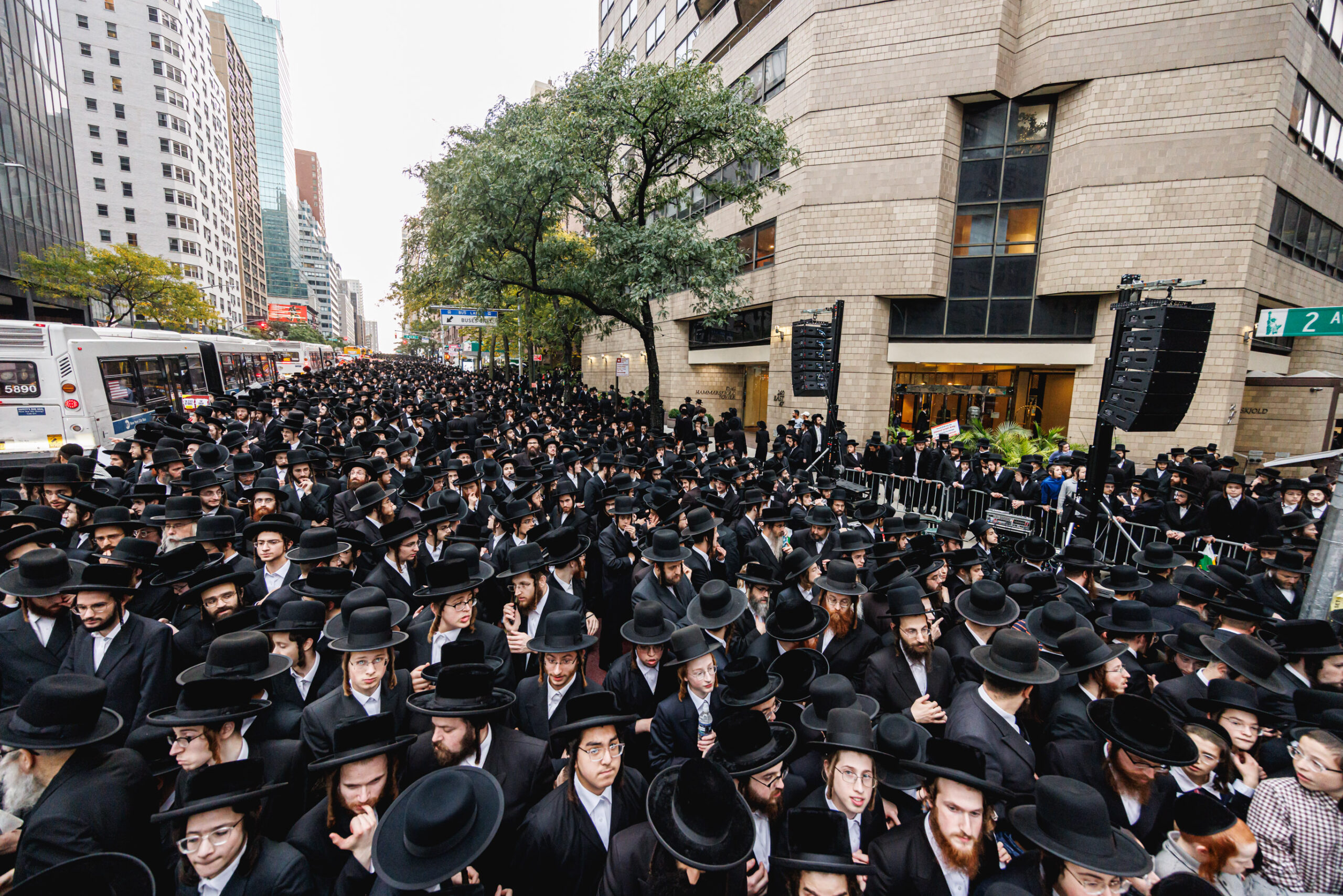 כחלק מההסכמה עם משטרת ניו יורק, השדרה המרכזית לא נחסמה והתאפשרה בה תנועת כלי רב, לצד המפגינים שעמדו על המדרכה לאורך עשרות מטרים. אל ההפגנה הגיעו האדמו”רים מסאטמר שליט”א, וכן האדמו”ר מבאבוב שליט”א, לצד רבנים וראשי ישיבות.