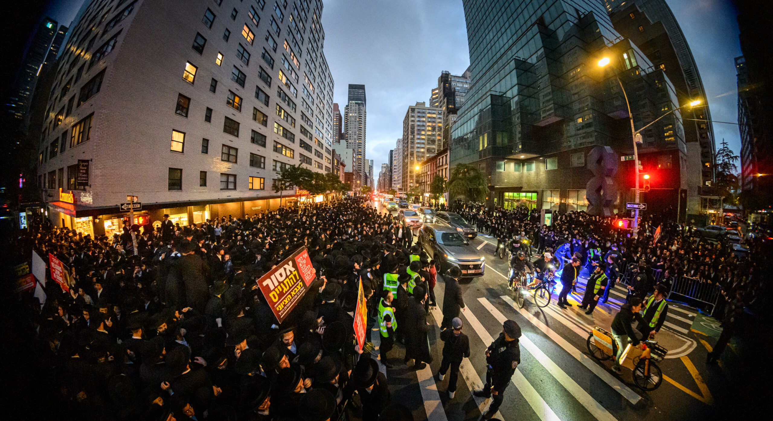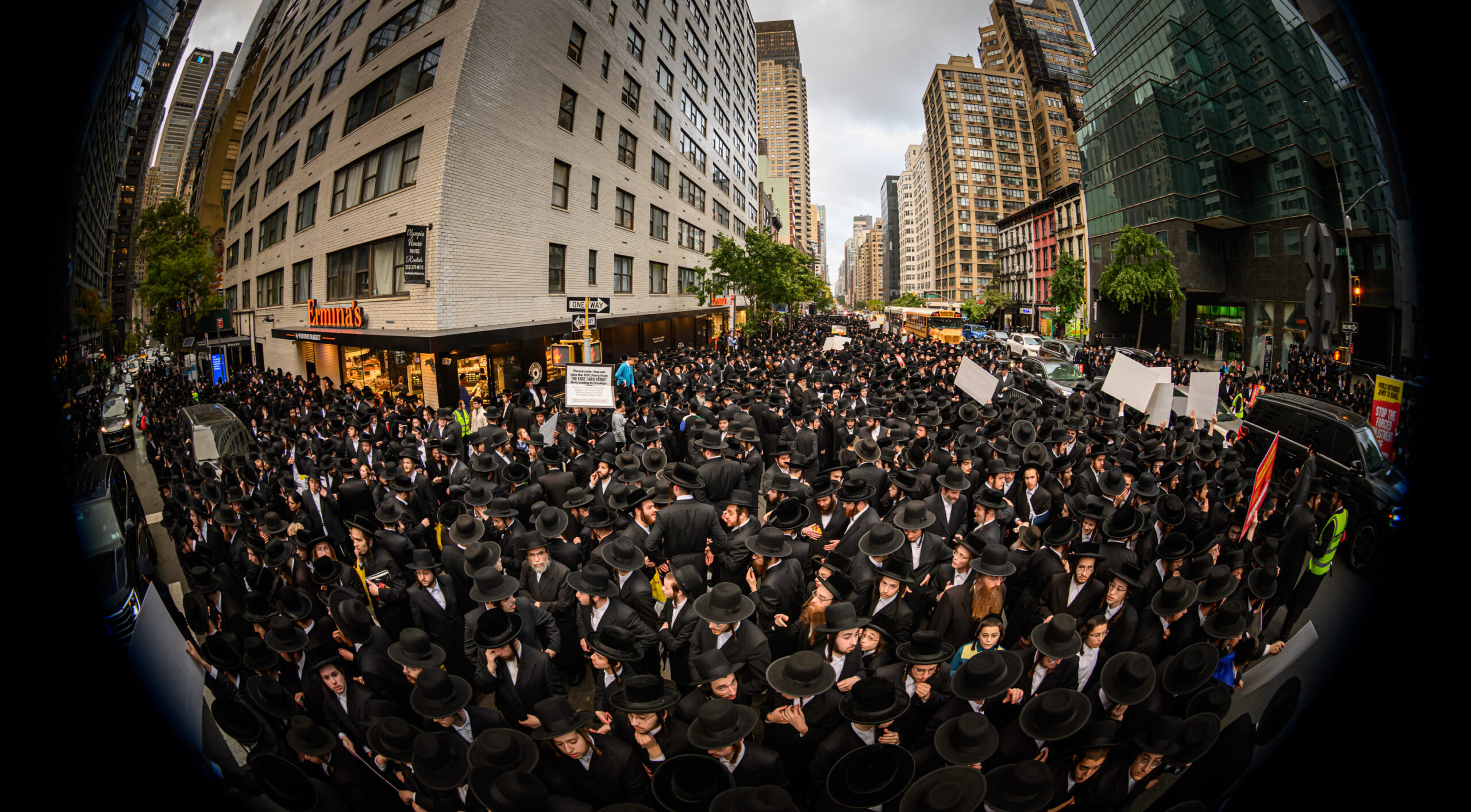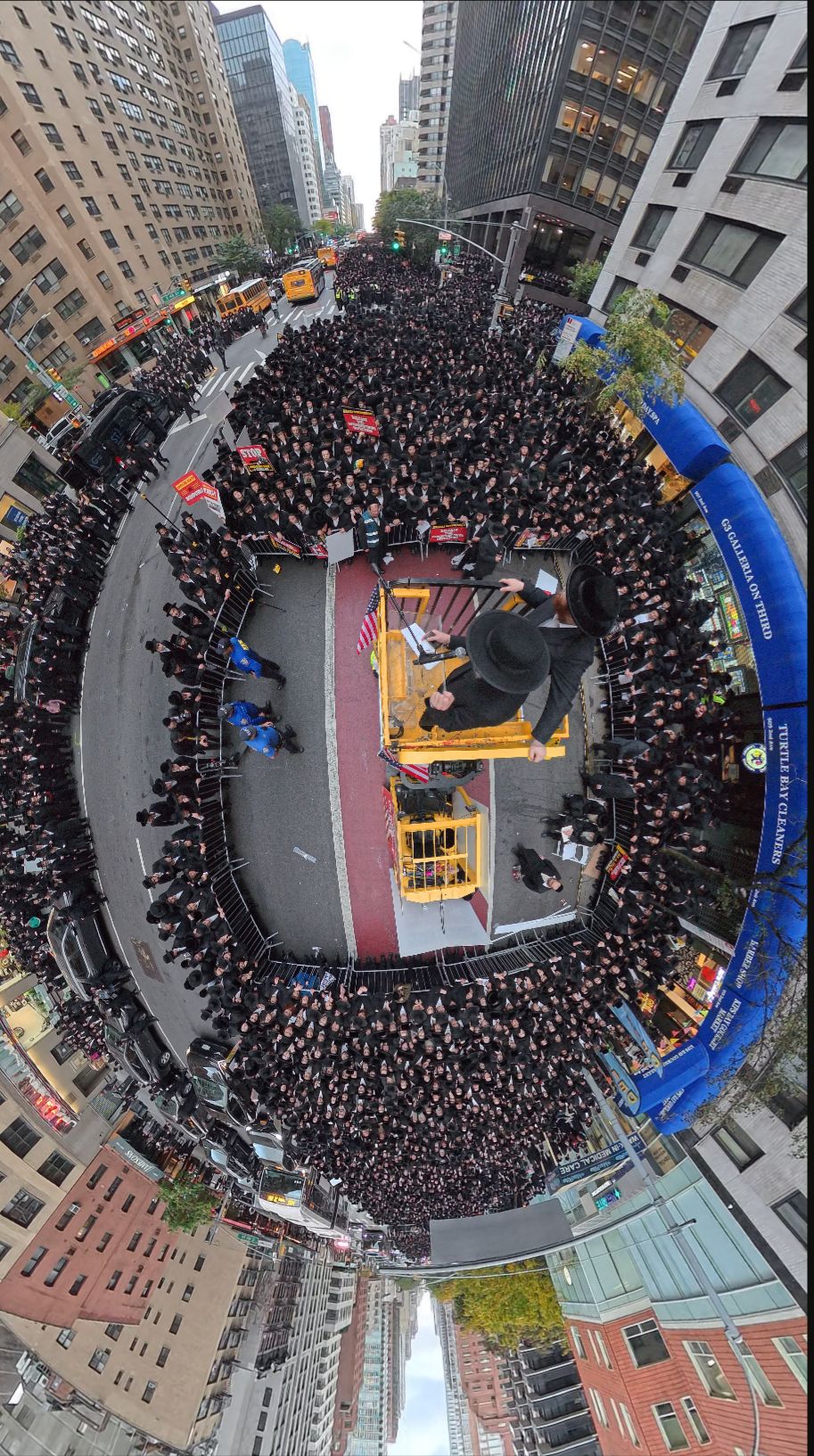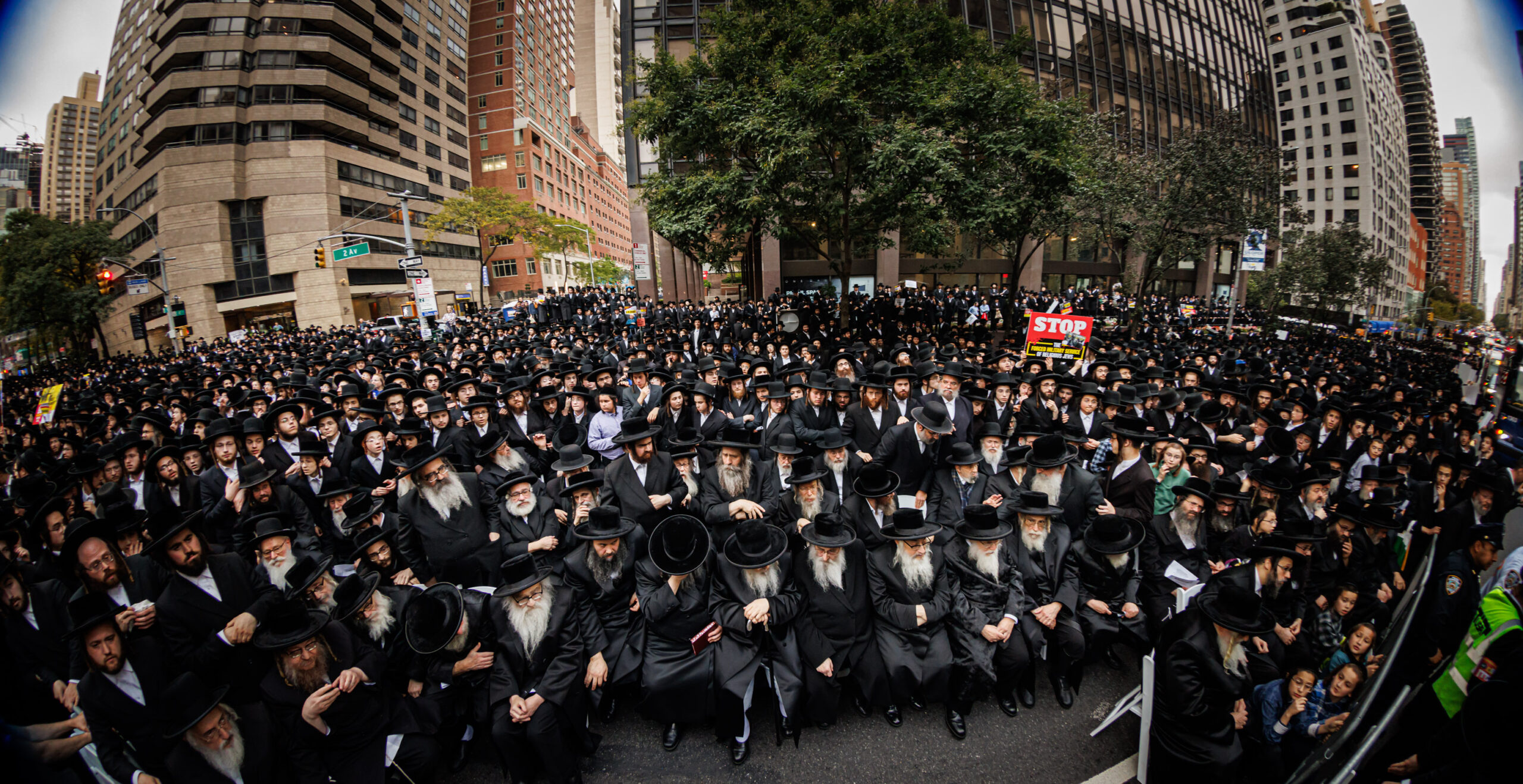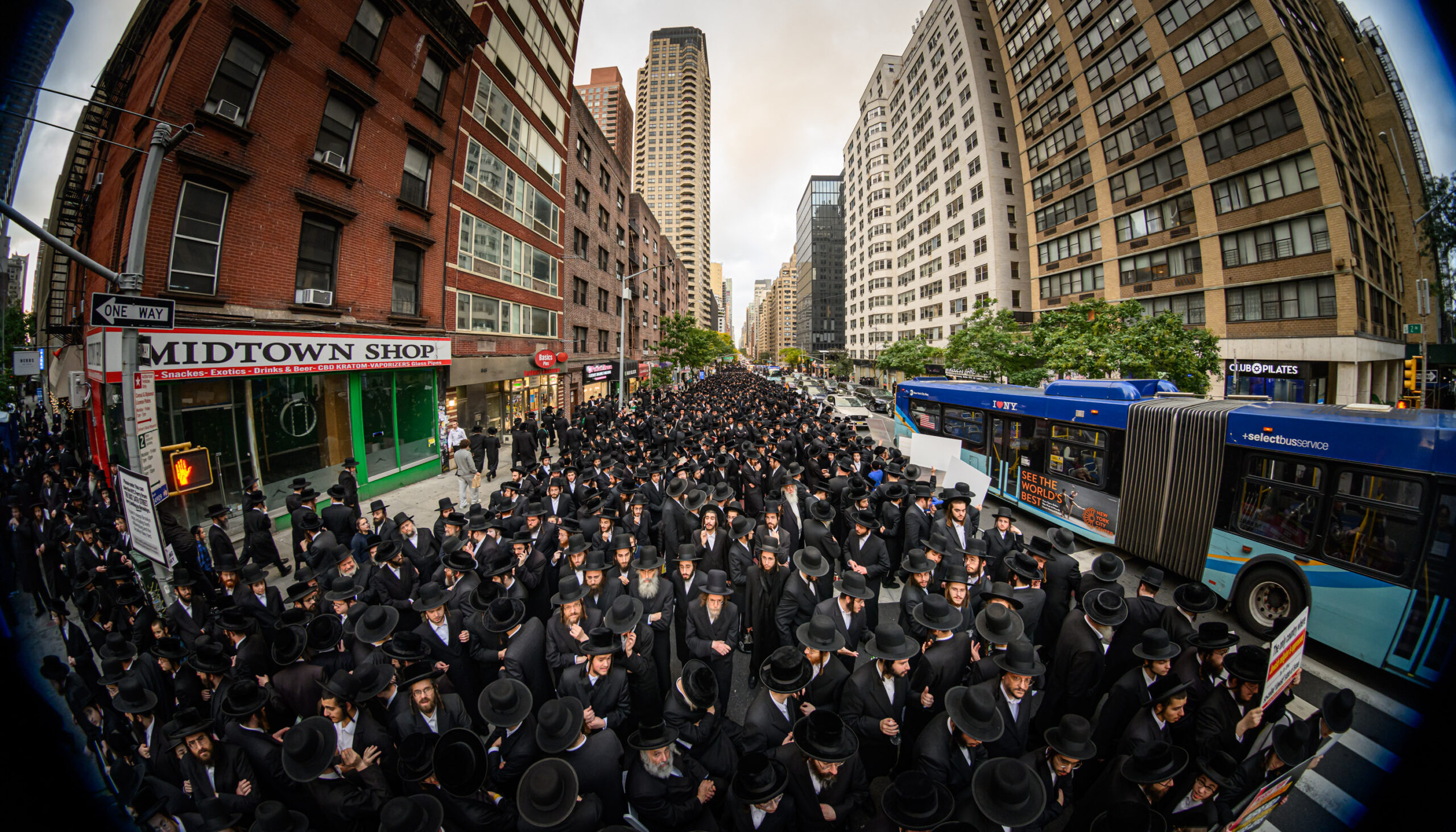 כחלק מההסכמה עם משטרת ניו יורק, השדרה המרכזית לא נחסמה והתאפשרה בה תנועת כלי רב, לצד המפגינים שעמדו על המדרכה לאורך עשרות מטרים. אל ההפגנה הגיעו האדמו”רים מסאטמר שליט”א, וכן האדמו”ר מבאבוב שליט”א, לצד רבנים וראשי ישיבות.