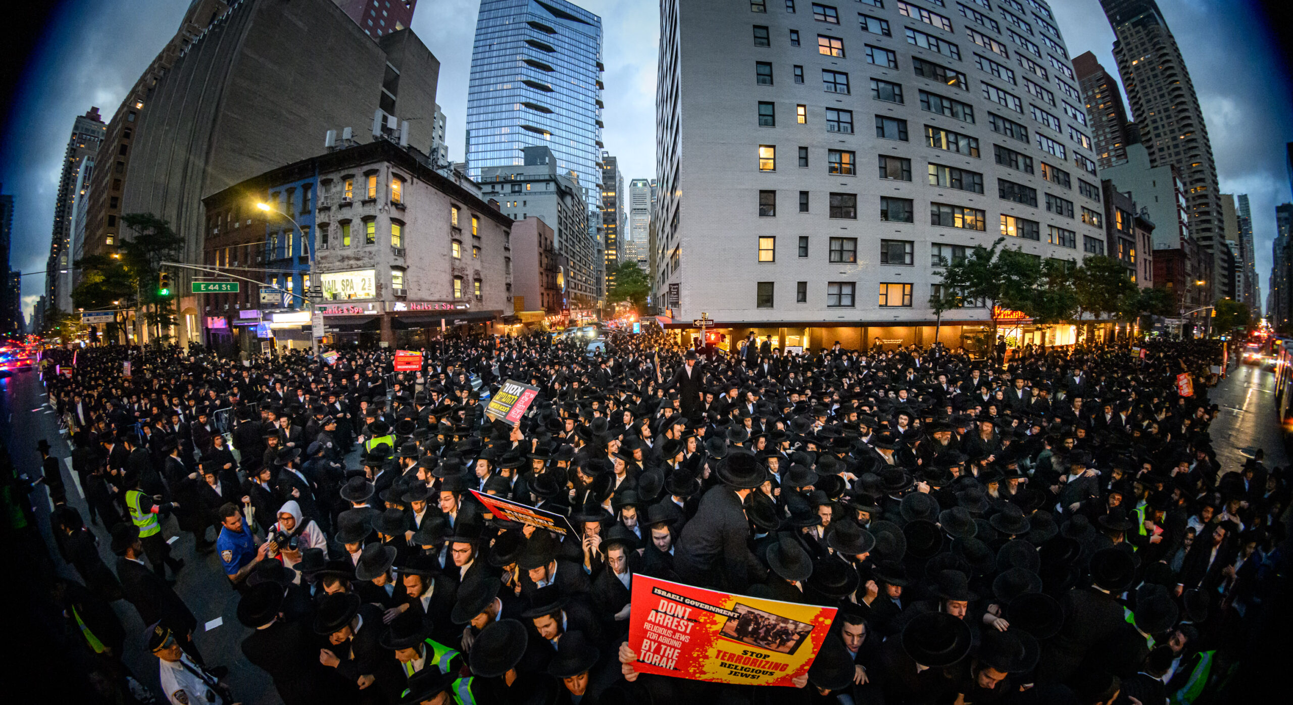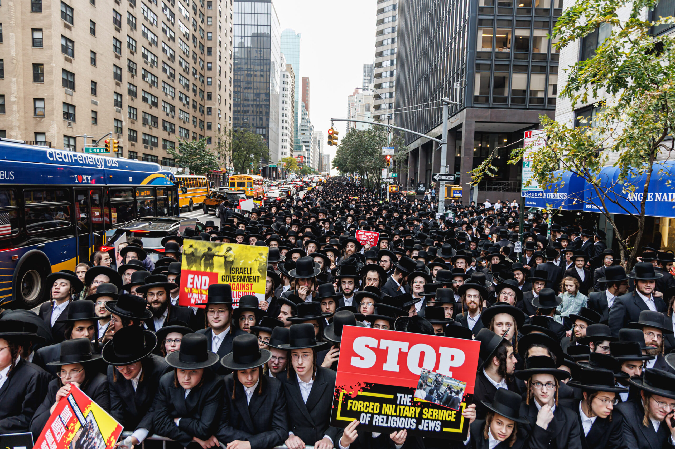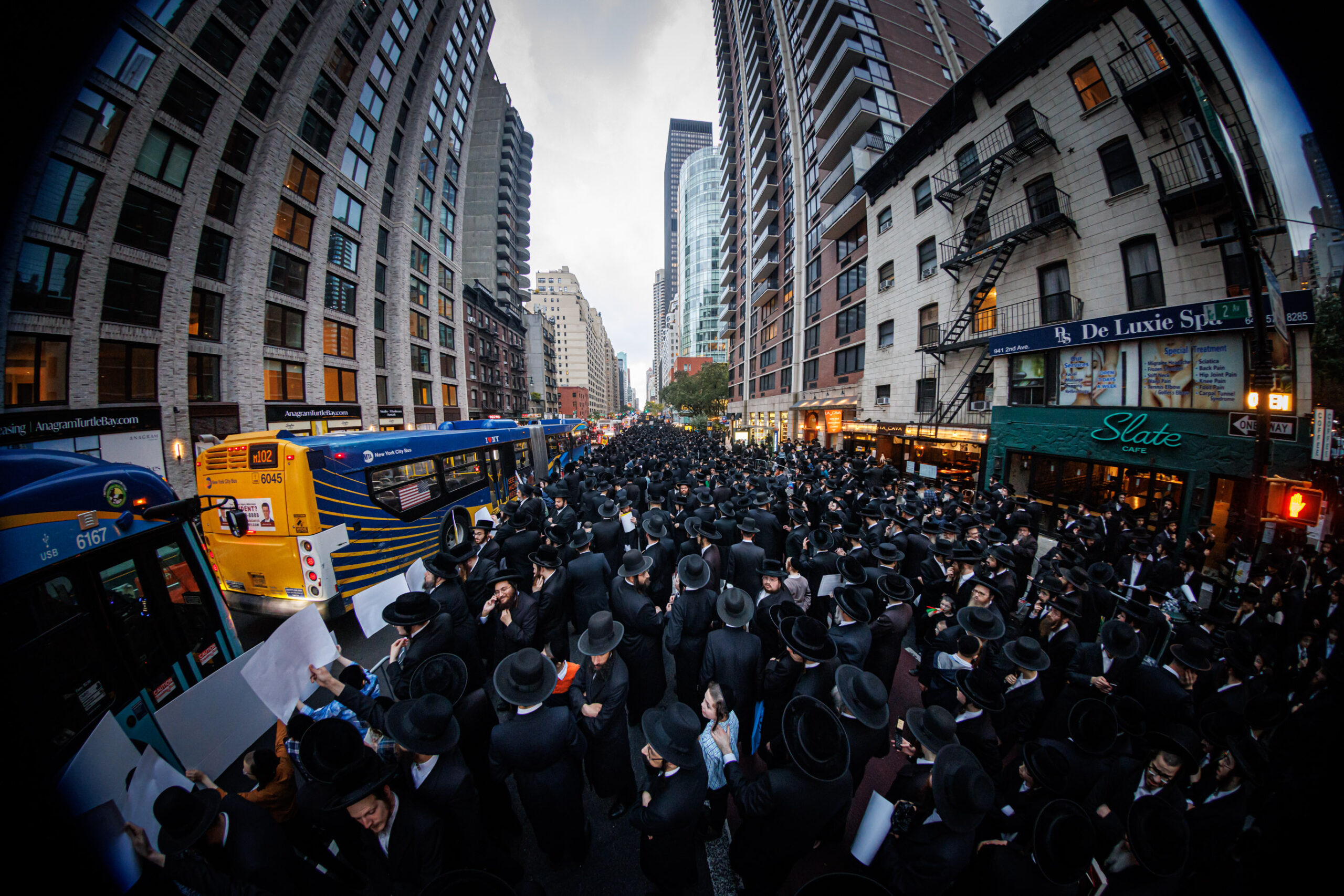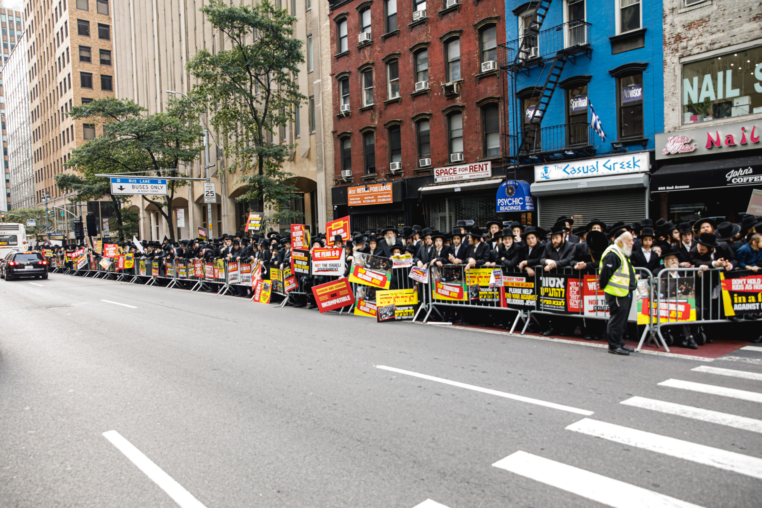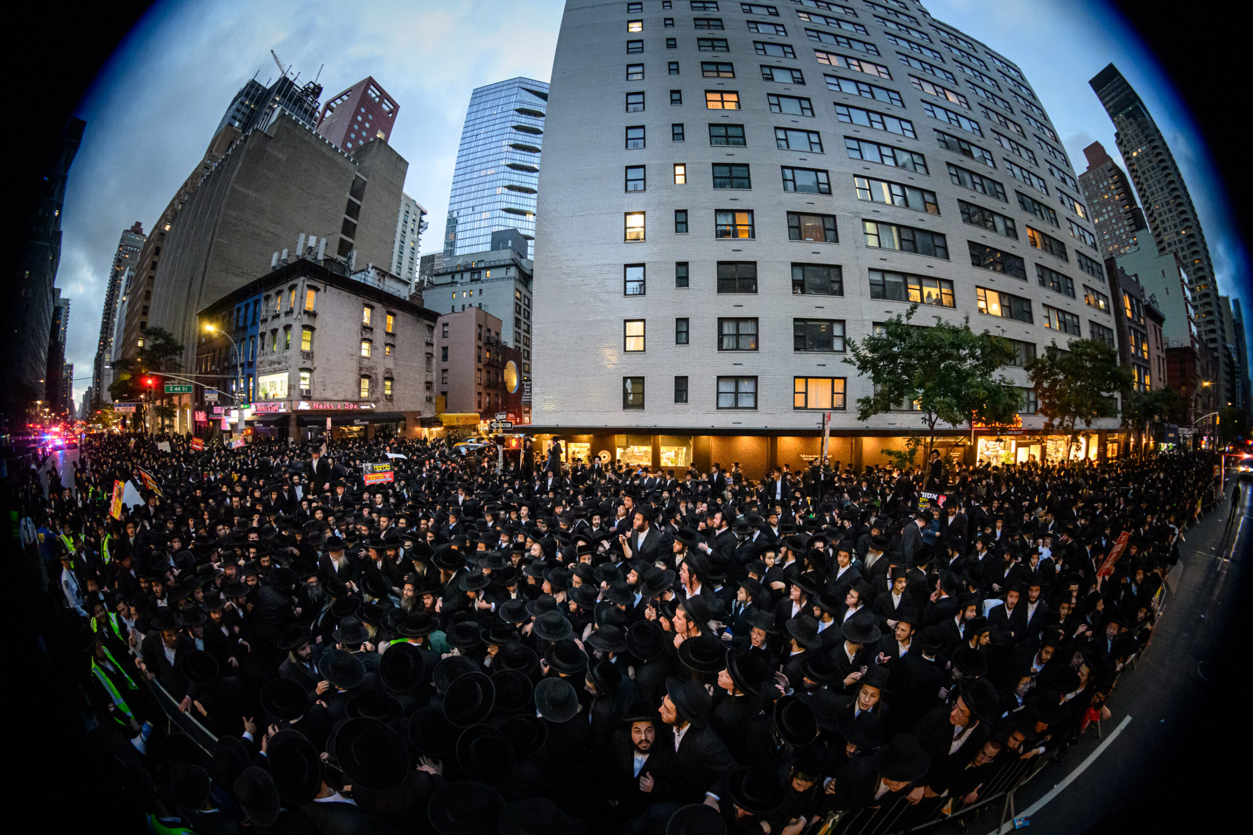 כחלק מההסכמה עם משטרת ניו יורק, השדרה המרכזית לא נחסמה והתאפשרה בה תנועת כלי רב, לצד המפגינים שעמדו על המדרכה לאורך עשרות מטרים. אל ההפגנה הגיעו האדמו”רים מסאטמר שליט”א, וכן האדמו”ר מבאבוב שליט”א, לצד רבנים וראשי ישיבות.