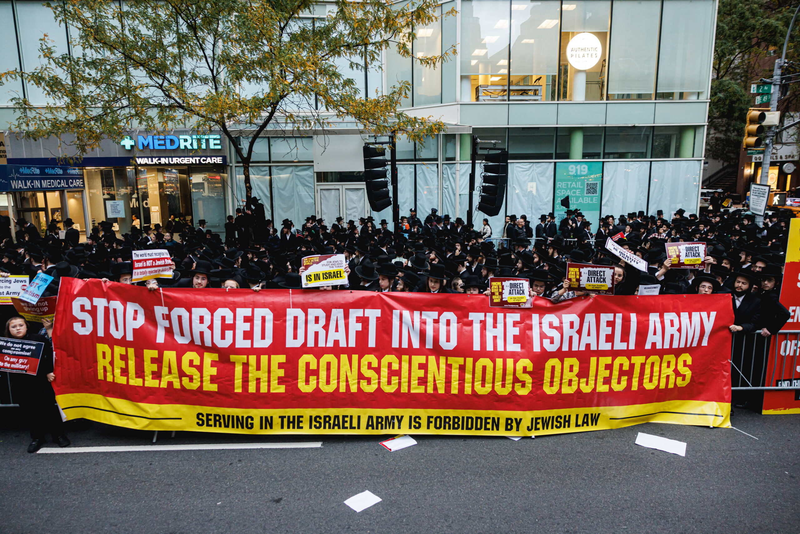 עשרות אלפי חסידים, ברובם חסידי סאטמר, הגיעו אמש (ראשון) להפגנת ענק מול קונסוליית ישראל בניו יורק. ההפגנה נערכה בעקבות חוק הגיוס בארץ, והמחאה על מעצרם של בחורים על לימוד תורה.