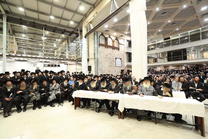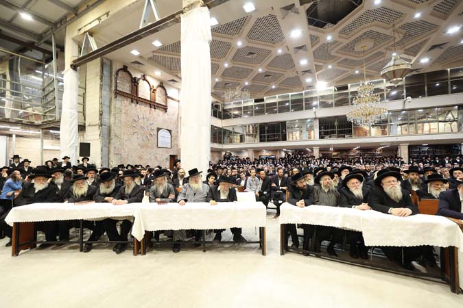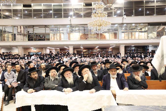 במשך קרוב לשעה הרחיב מרן פוסק הדור בדרשתו המסורתית בהלכה ובאגדה לפני אלפי המשתתפים, כאשר בחלק הקדמי של בית המדרש יושבים חברי בד”צ העדה החרדית, כ”ק האדמו”ר מדושינסקיא שבפשטנותו האופיינית ישב על אחד הספסלים כאחד מפשוטי העם, ועוד המוני מוצי”ם ורבנים מכלל קהילות הקודש של העדה החרדית.