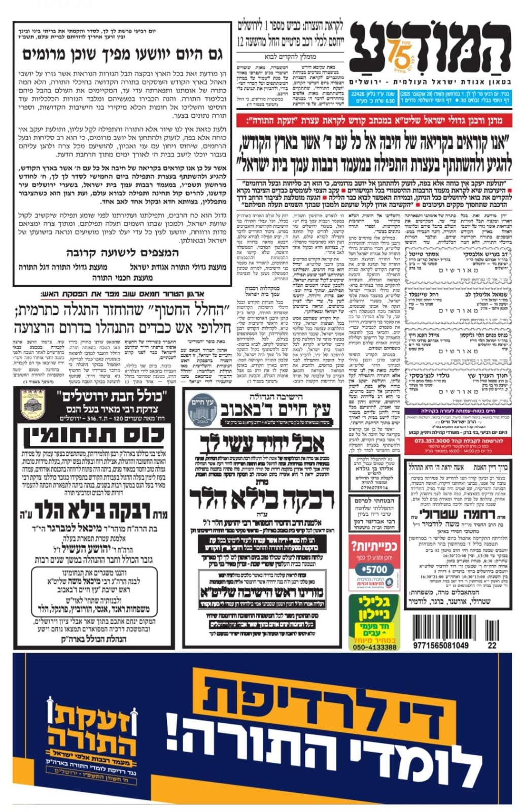 כנסו לקרוא את כותרות העמוד הראשון בעיתונים החרדים שיצאו לאור הבוקר. המודיע, יתד נאמן, המבשר בעמודים הראשונים.