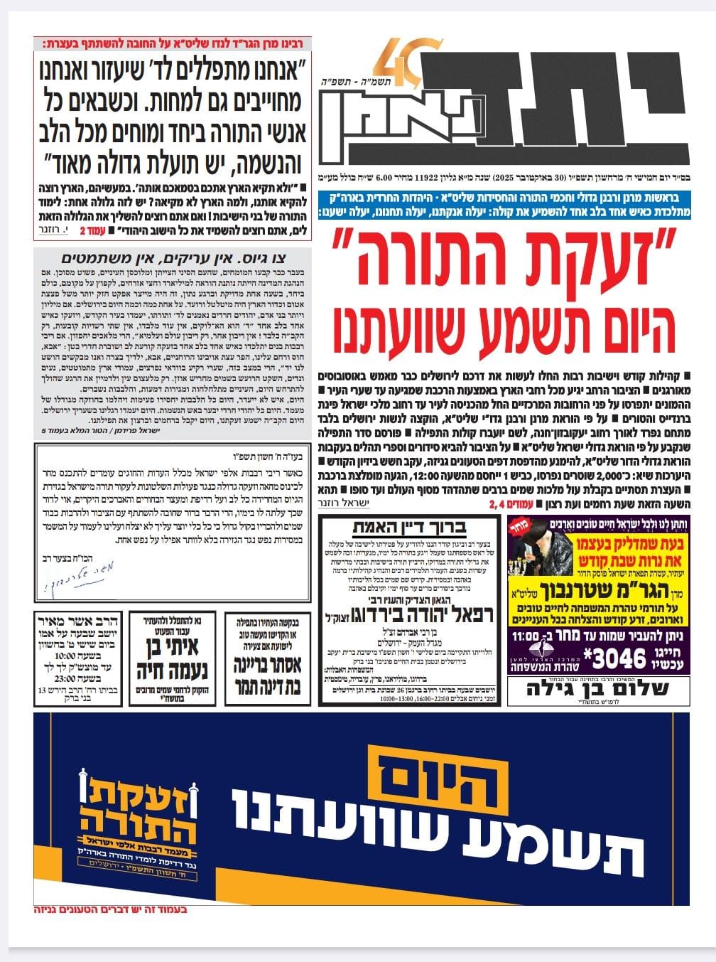 • צפו בכותרות העיתונים החרדים לבוקר יום שישי